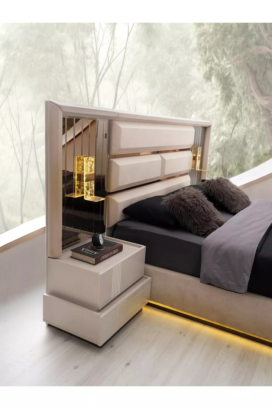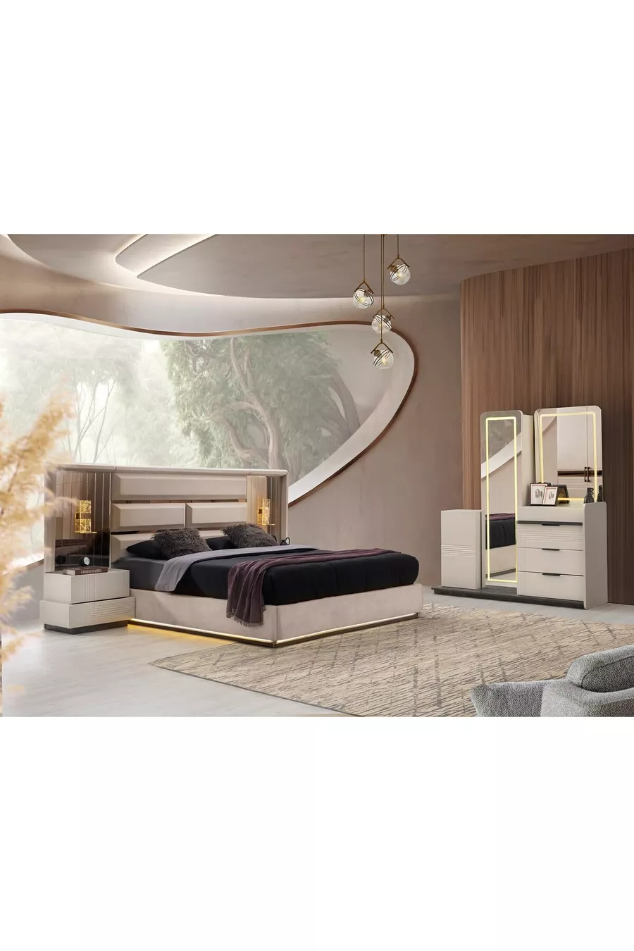 Renk:Çok RenkliGaranti Süresi:2 YılKaryola/Baza Ölçüsü:165 x 205Karyola Fonksiyonu:BazalıDolap Fonksiyonu:AynalıGardırop Gövde Materyali:MDFKapak Sayısı:6Set İçeriği:Bazalı Karyola + 2 Komodin + Şifonyer + GardıropStil:ModernTema / Stil:ModernMenşei:TRÖzellik:Ledli
