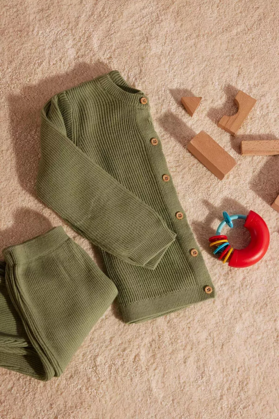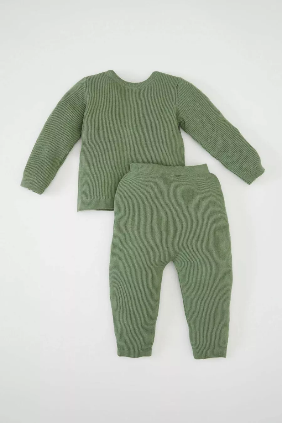 Erkek Bebek 2'li Takım Basic Düz Düğmeli Uzun Kollu Triko Hırka Beli Lastikli Triko Alt AU
