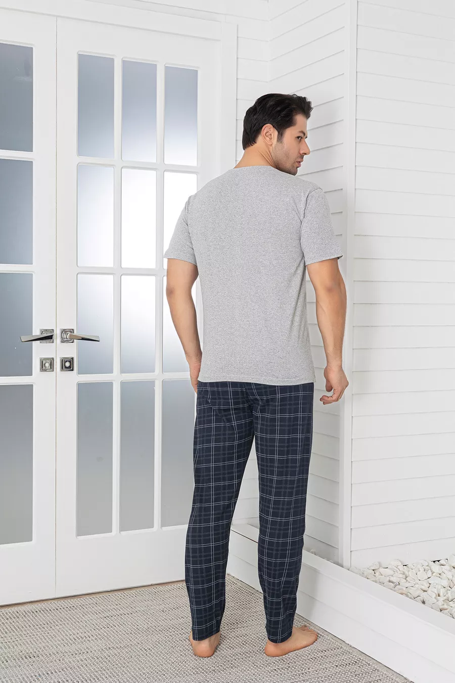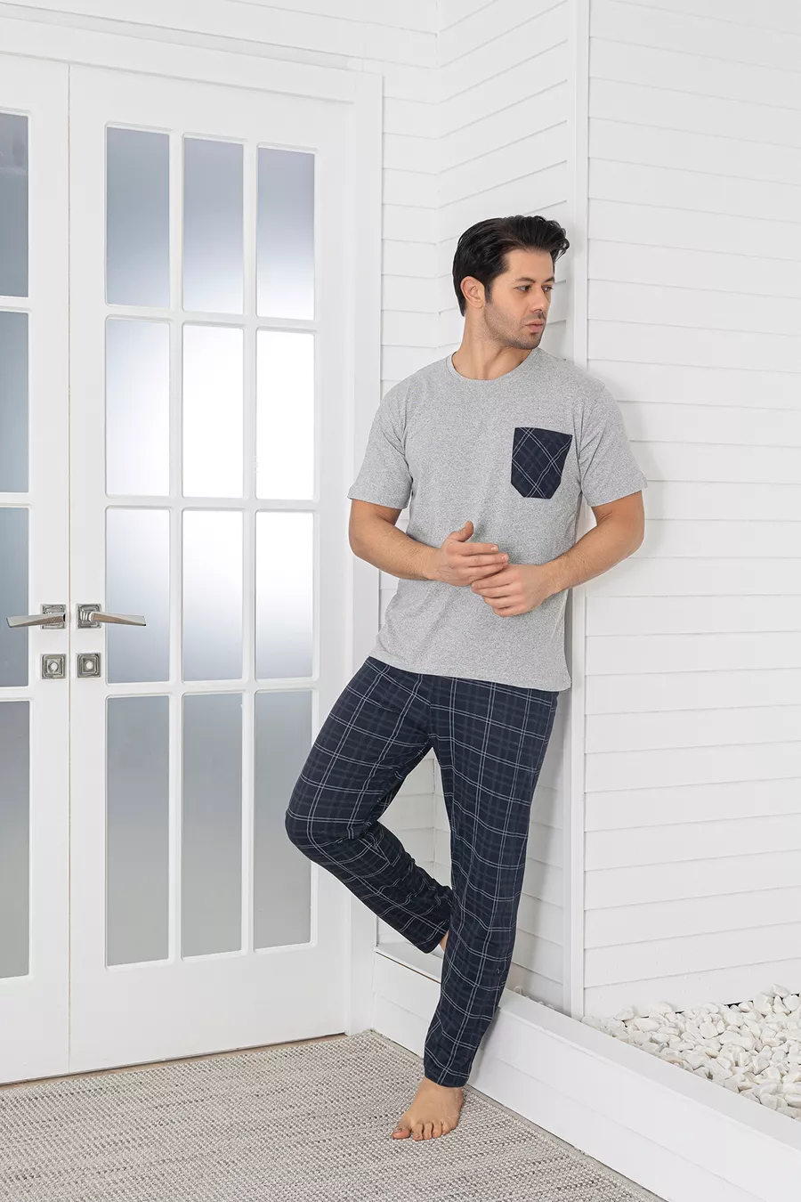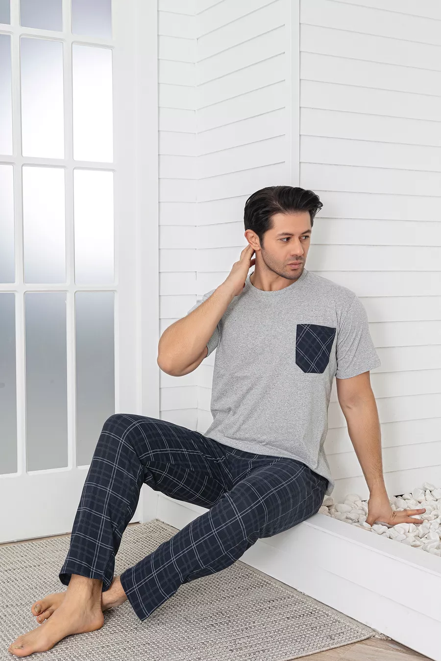 Erkek Ekoseli Cepli Kısa Kollu Pijama Takımı