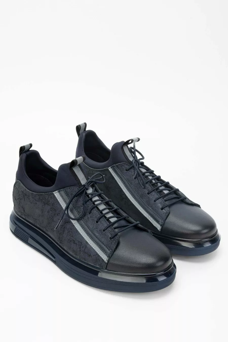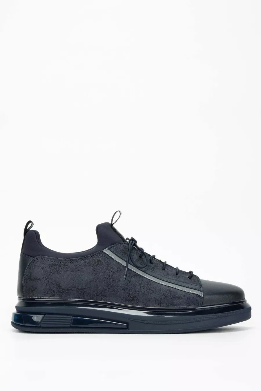 Erkek Hakiki Deri Lacivert Streç Sneakers & Spor Ayakkabı
