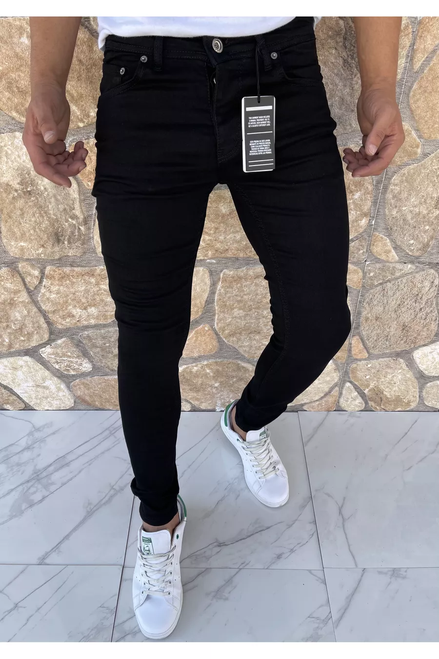 Erkek Jeans Skinny Fit Likralı Düz Siyah