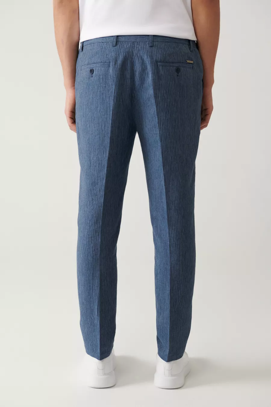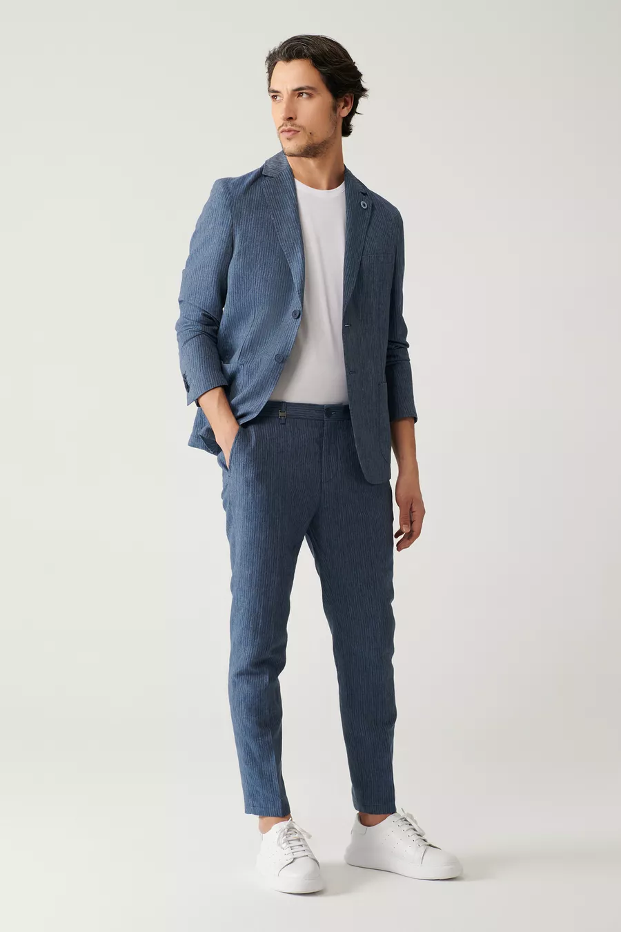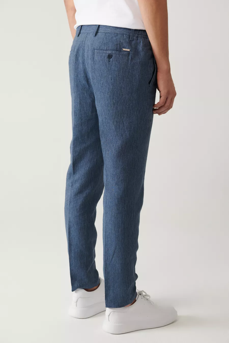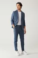 Erkek Mavi Relaxed Fit Beli Lastikli Keten Karışımlı Linen Touch Takım Elbise Pantolonu