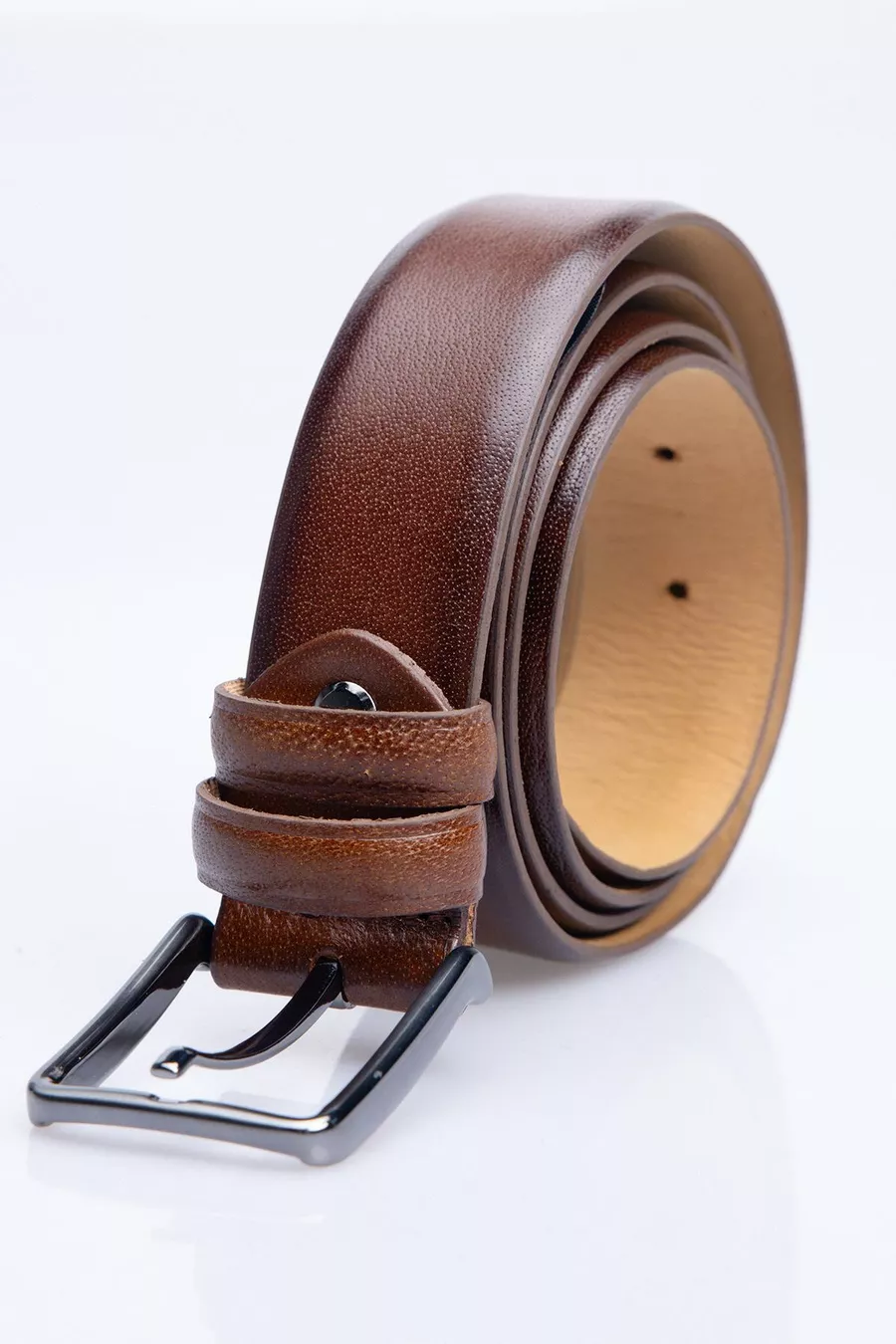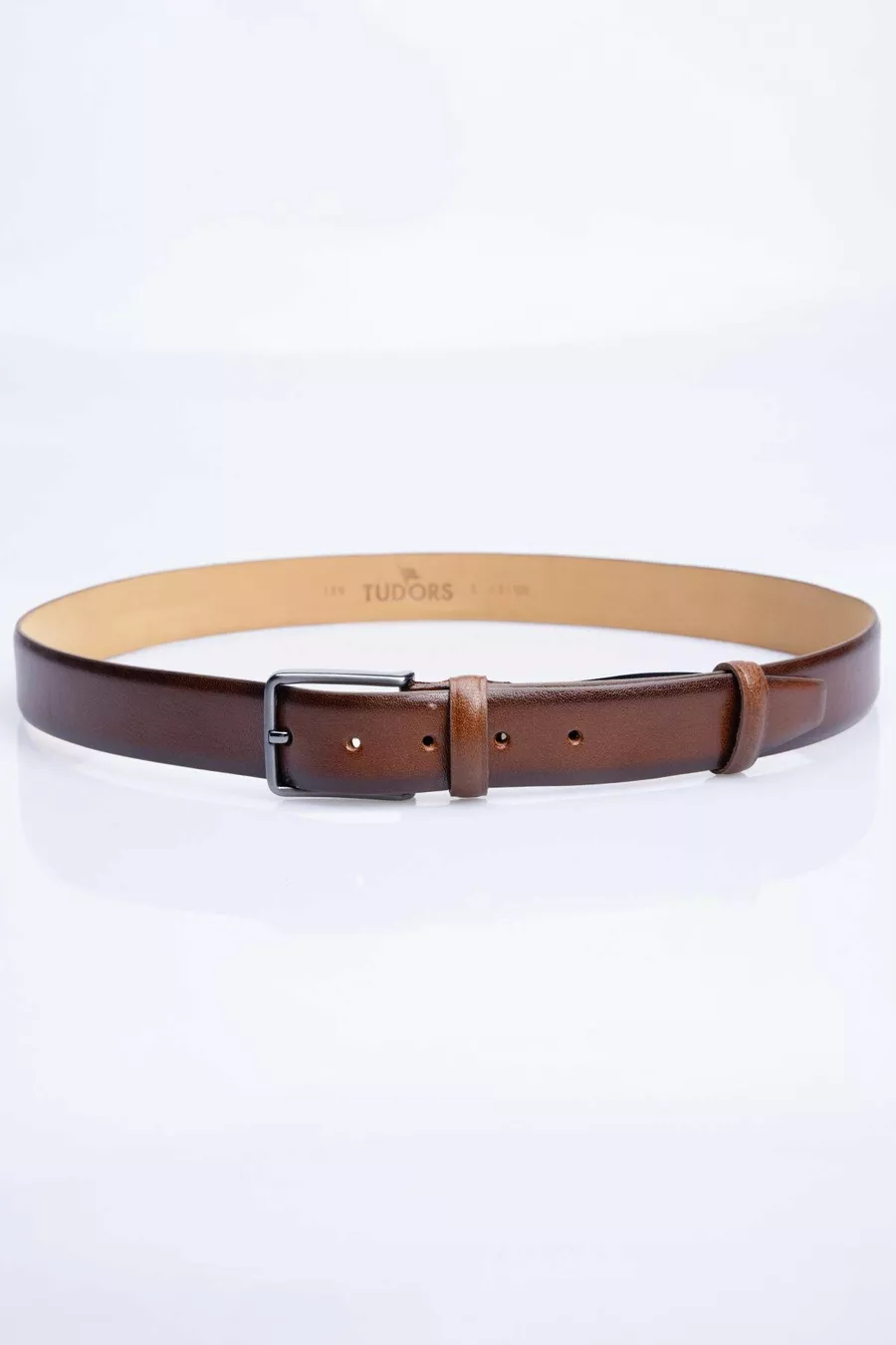 Erkek % Hakiki Deri 3,5 cm Klasik Taba Renk Kemer