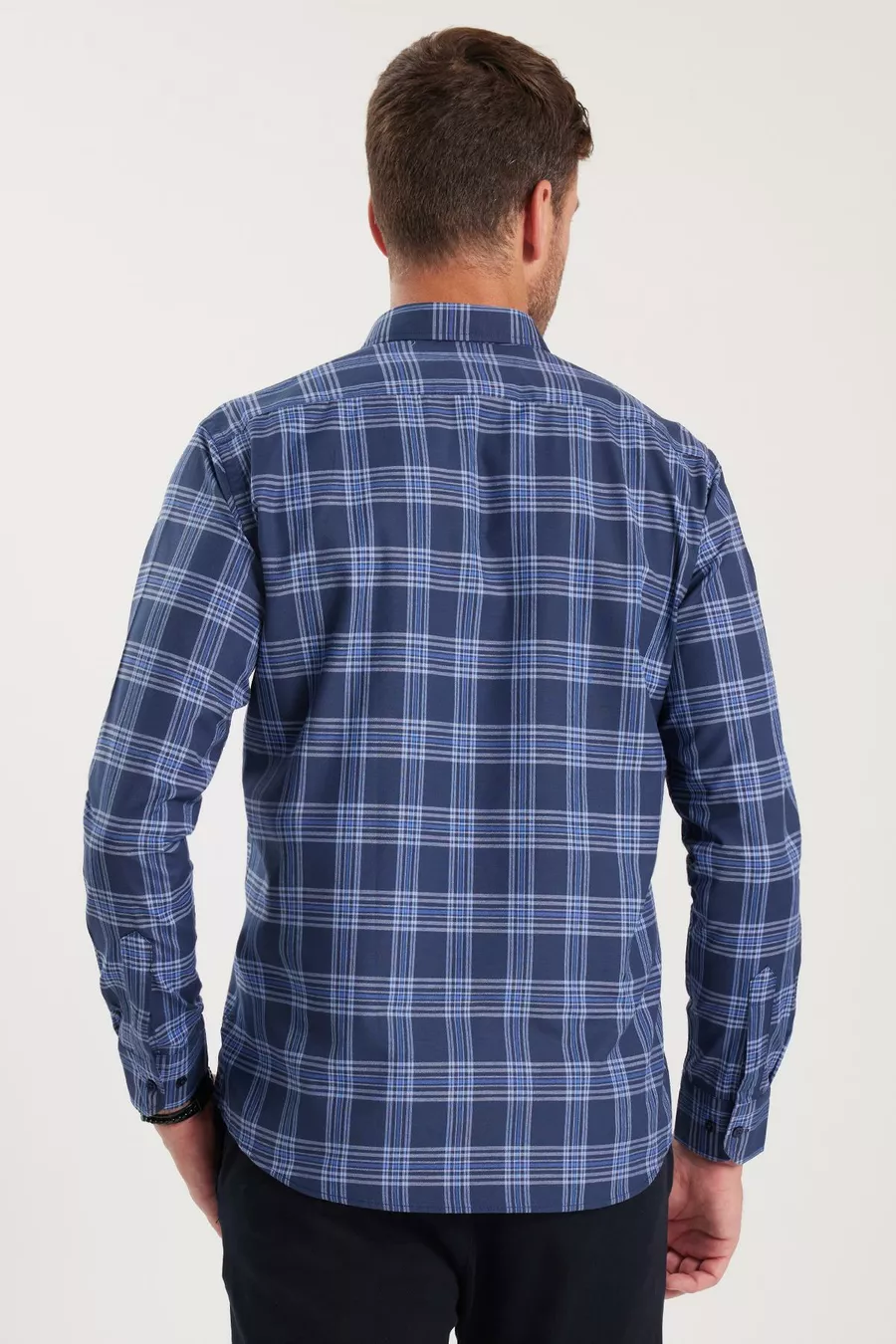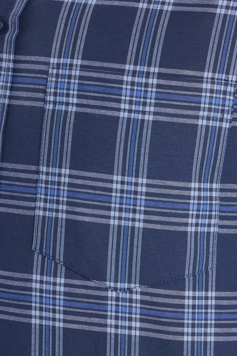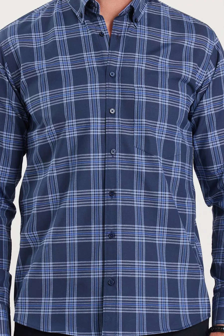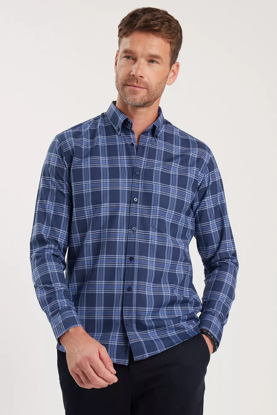 Erkek Regular Fit Klasik Kesim Pamuklu Küçük Kareli Düğmeli Yaka Gömlek