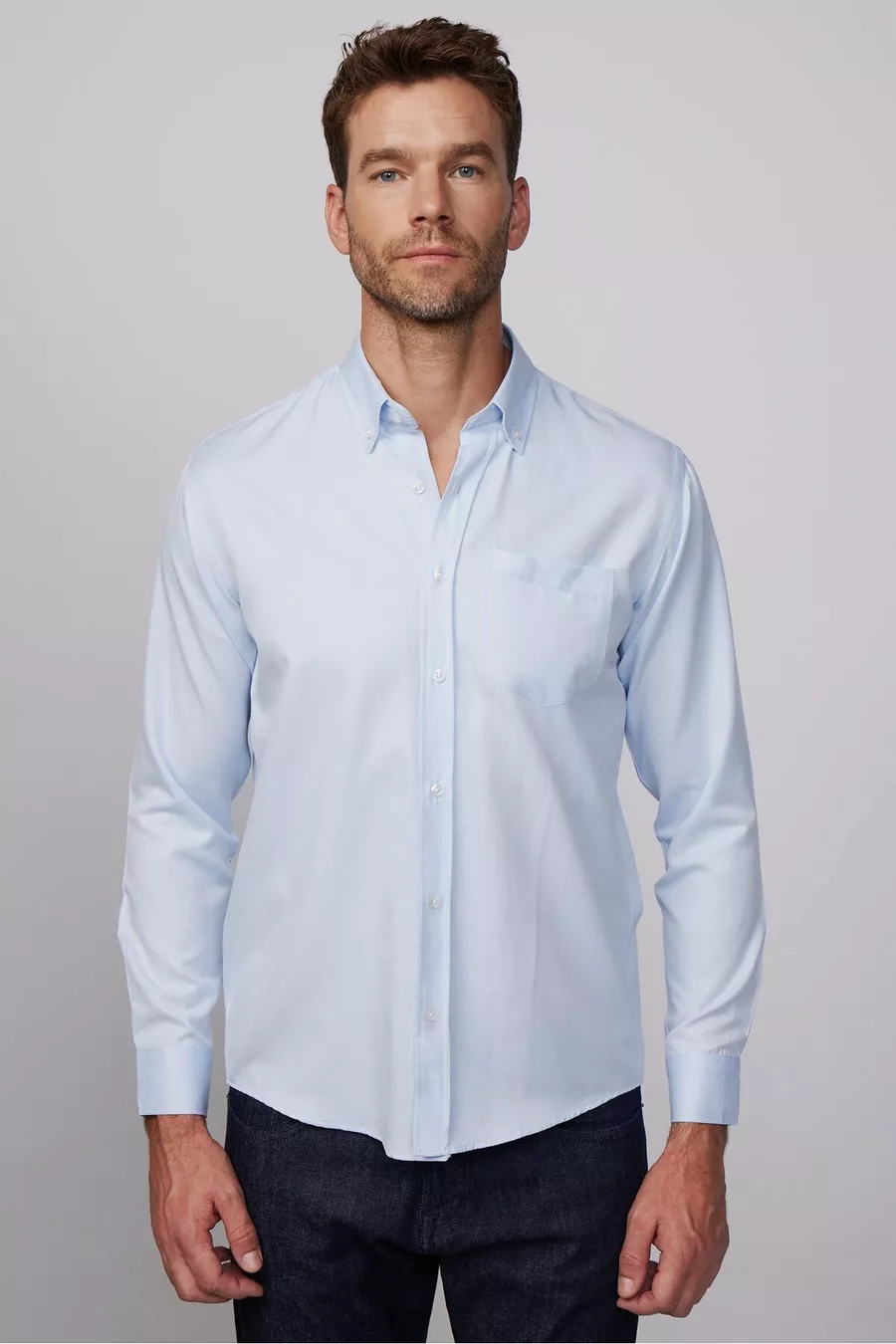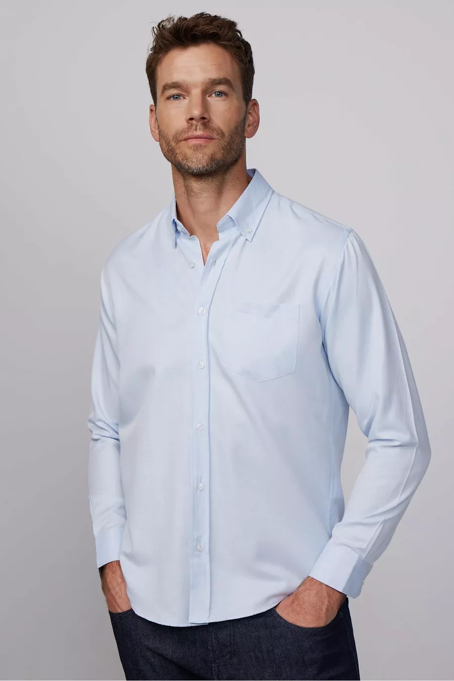 Erkek Regular Fit Klasik Kesim Düz Yaka Düğmeli Cepli Mavi Gömlek