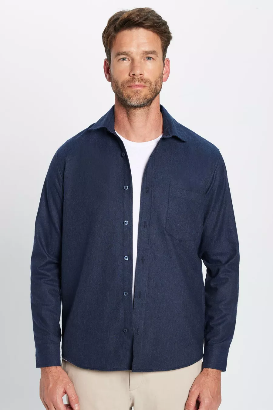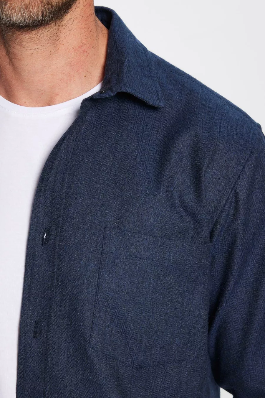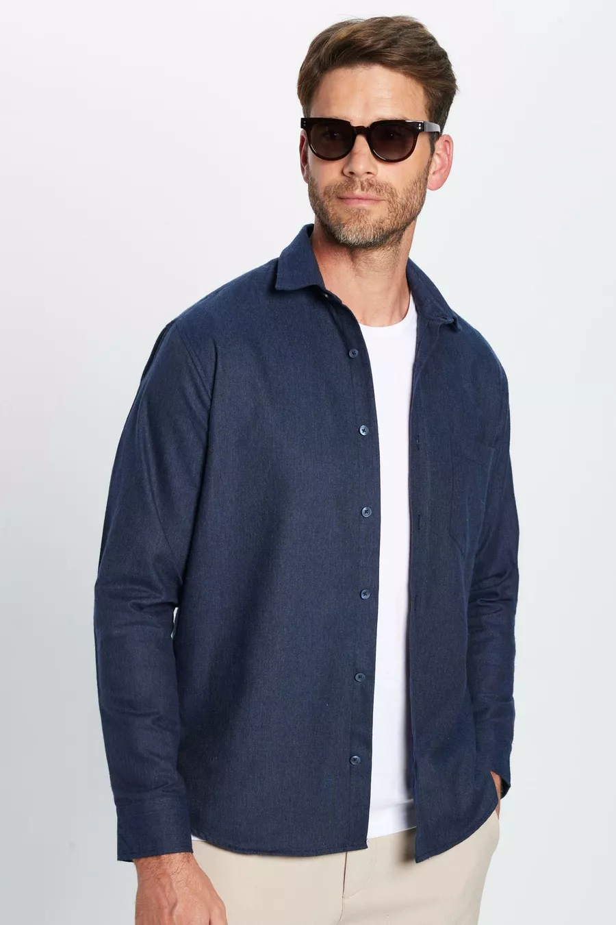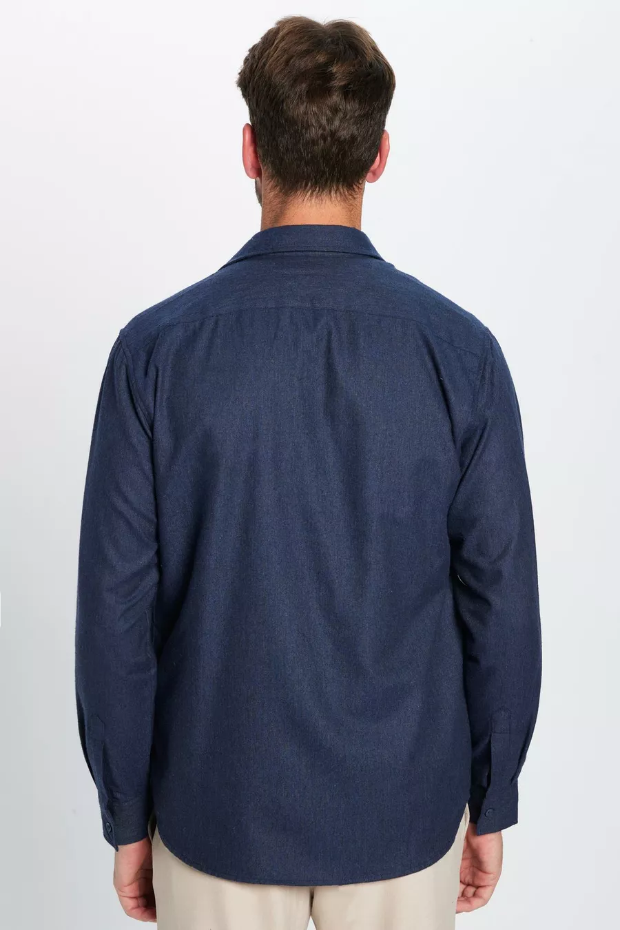 Erkek Regular Fit Klasik Kesim Pamuklu Tek Cepli Armürlü Kışlık Oduncu Lacivert Gömlek