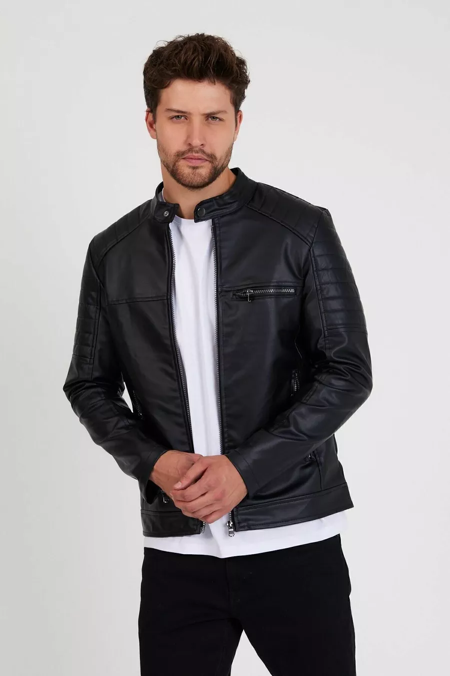 Kol Tipi:Uzun Kol Desen:Düz Kalıp:Slim Fit Yaka Tipi:Bebe Yaka Materyal:Suni Deri Kumaş Tipi:Dokuma Renk:Siyah Kapama Şekli:Fermuarlı Ürün Detayı:Çıtçıtlı Cep:Çift cepli Kol Boyu:Uzun Koleksiyon:Basic Kalınlık:Orta Astar Durumu:Astarlı Boy:Normal Boy Siluet:Slim Ortam:Casual/Günlük Ek Özellik:Su Geçirmez Dokuma Tipi:Suni Deri Sürdürülebilirlik Detayı:Hayır Kemer/Kuşak Durumu:Kemersiz Ürün Tipi:Düz Materyal Bileşeni:100% Polyester Yıkama Talimatı:Type 4 Sezon:Tüm Sezonlar Menşei:TR Kutu Durumu:Kutu yok