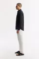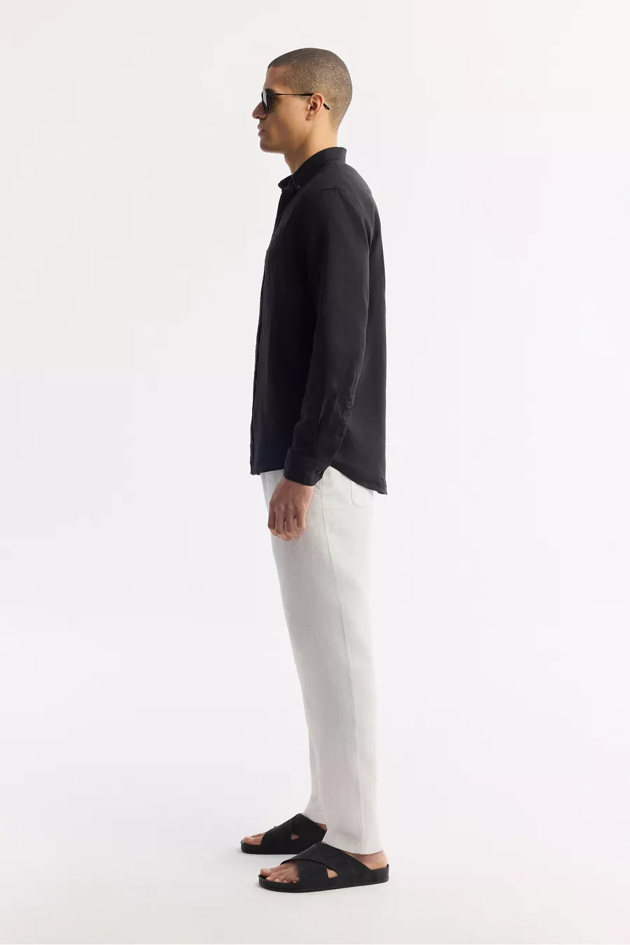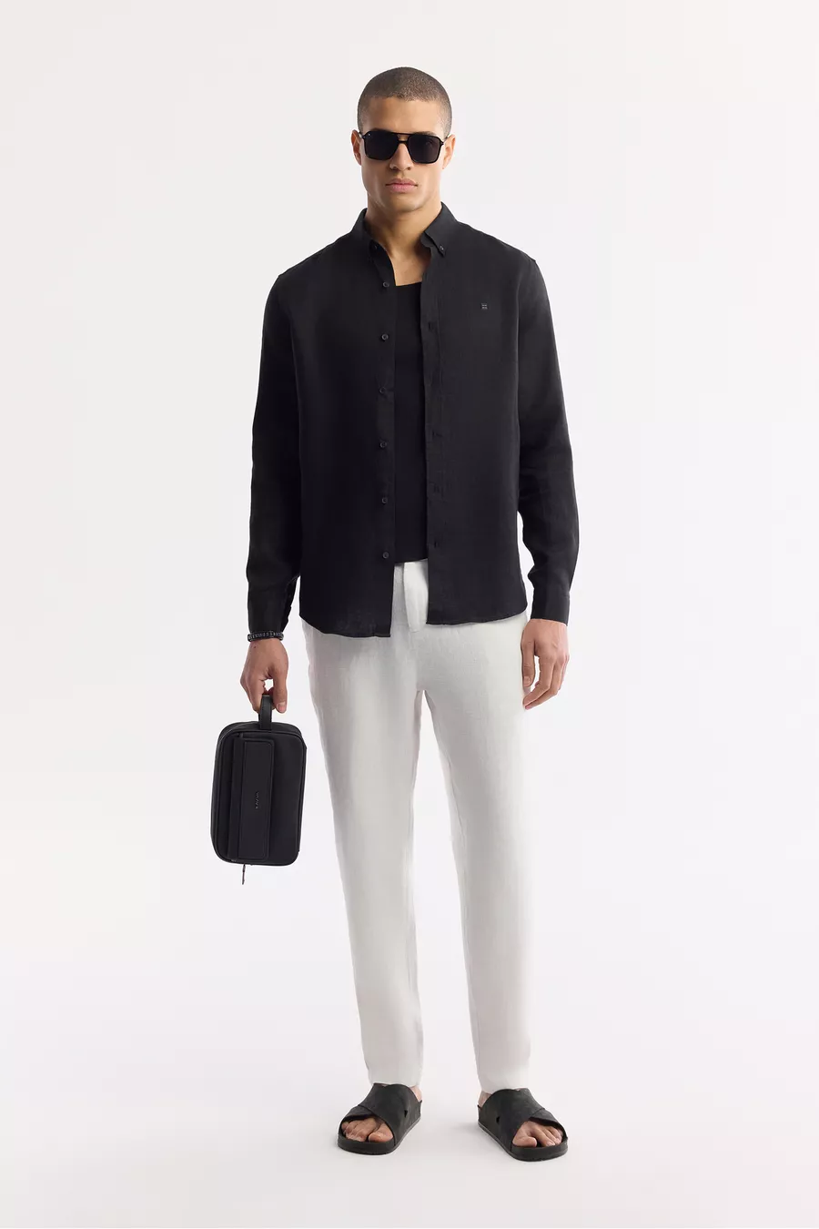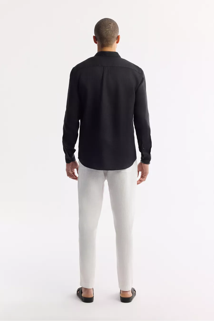 Erkek Siyah Düğmeli Yaka % Keten Comfort Fit Gömlek