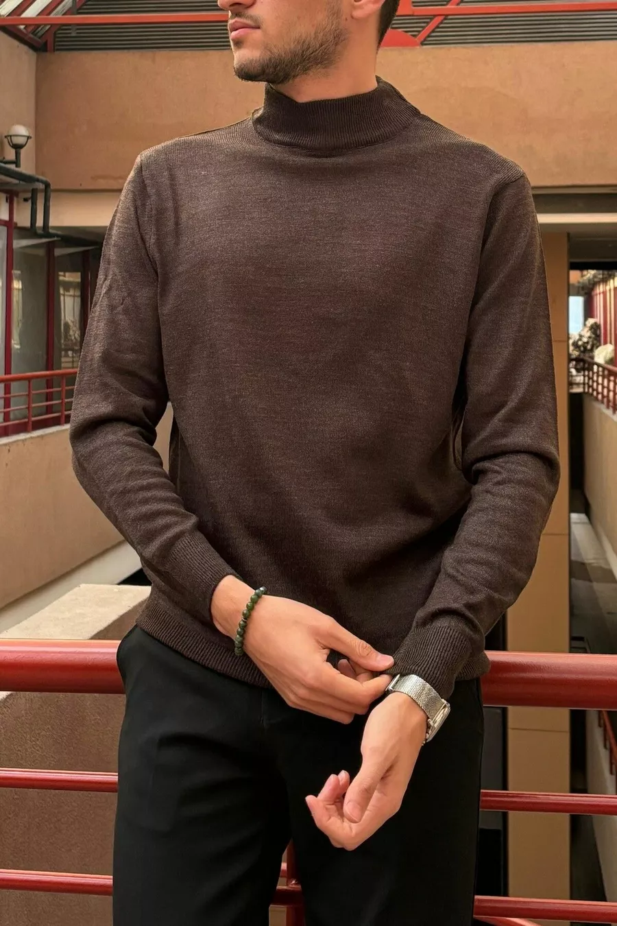 Erkek, Slim-Fit, Old Money, Yarım Boğazlı triko kazak