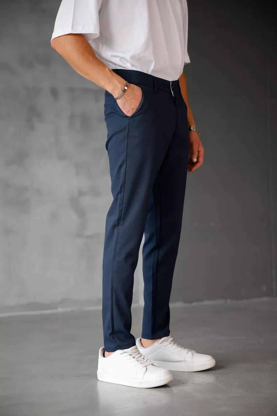 Erkek Slim Fit Lacivert Keten Pantolon