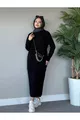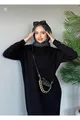 Fitilli Triko Elbise Siyah