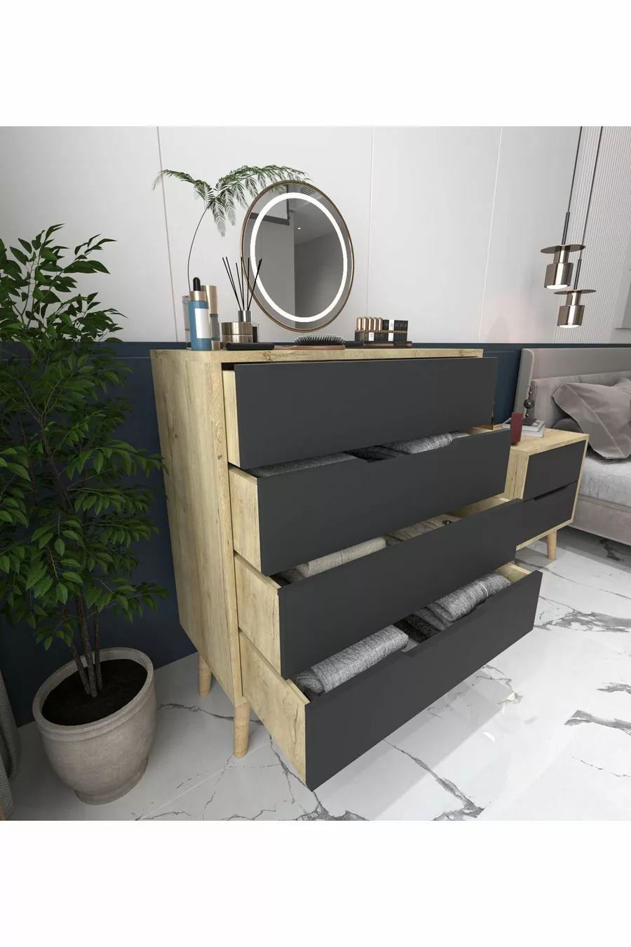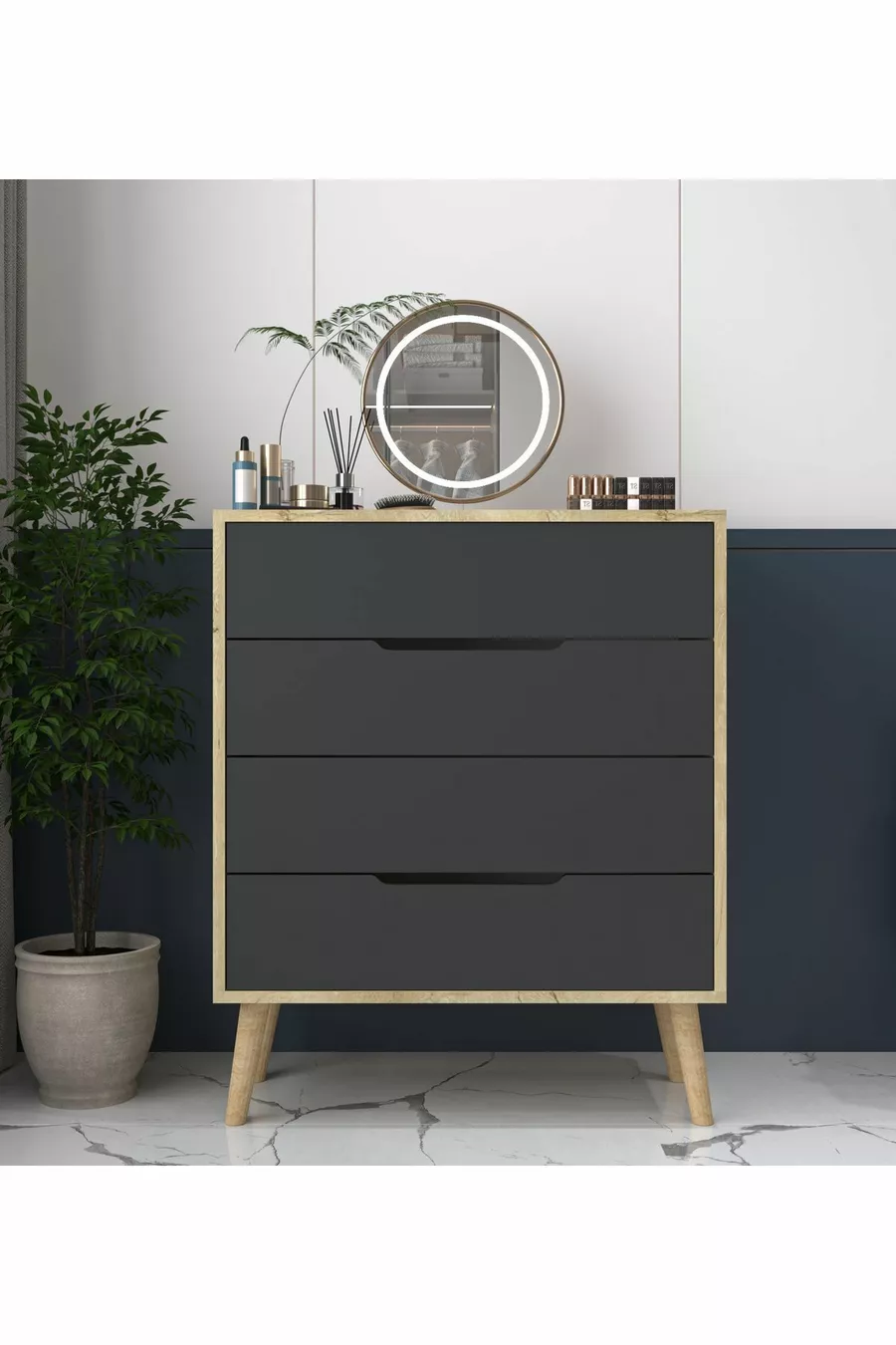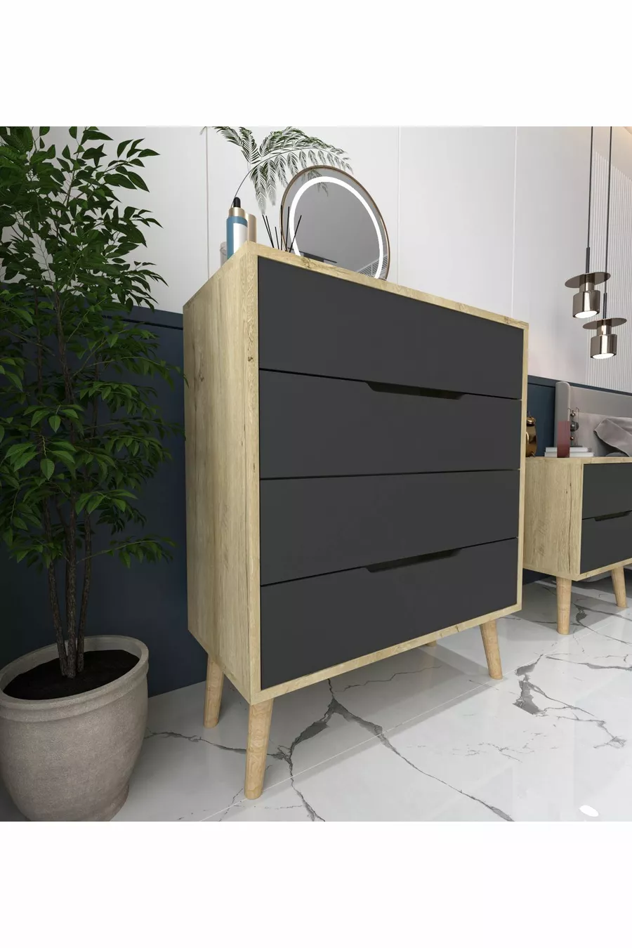 Flora Şifonyer 4 Çekmeceli Yatak Odası Bebek Odası Safir Meşe-Antrasit