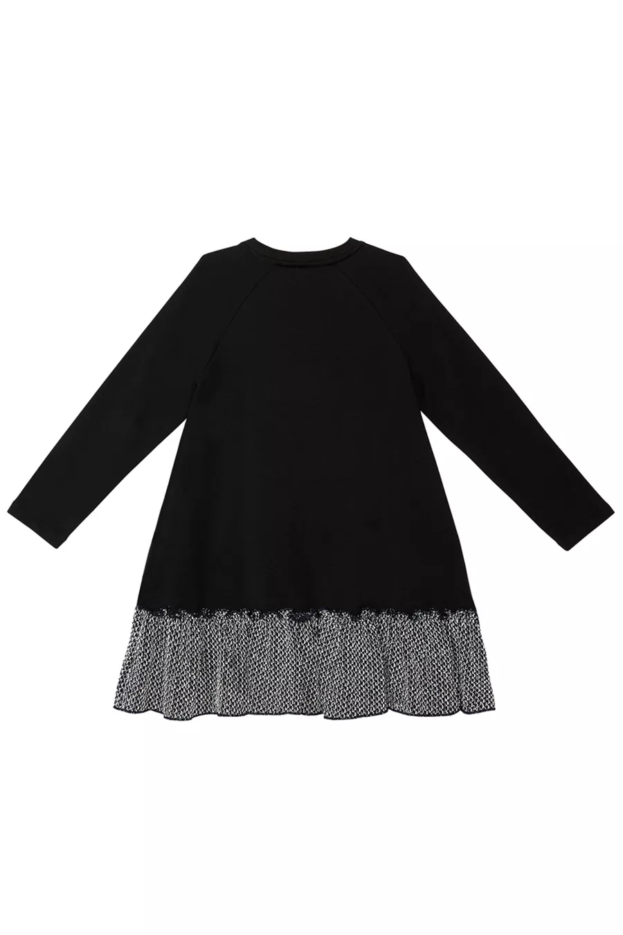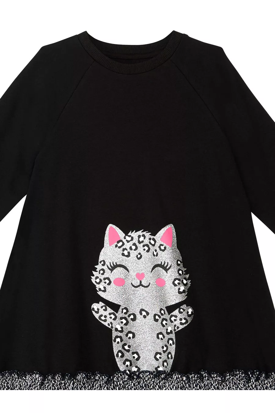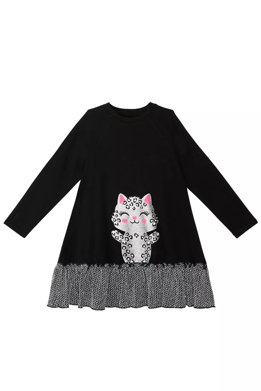 Gümüş Leopar Kız Çocuk Siyah Fırfırlı Elbise