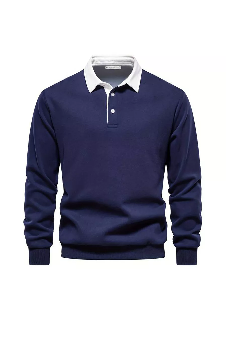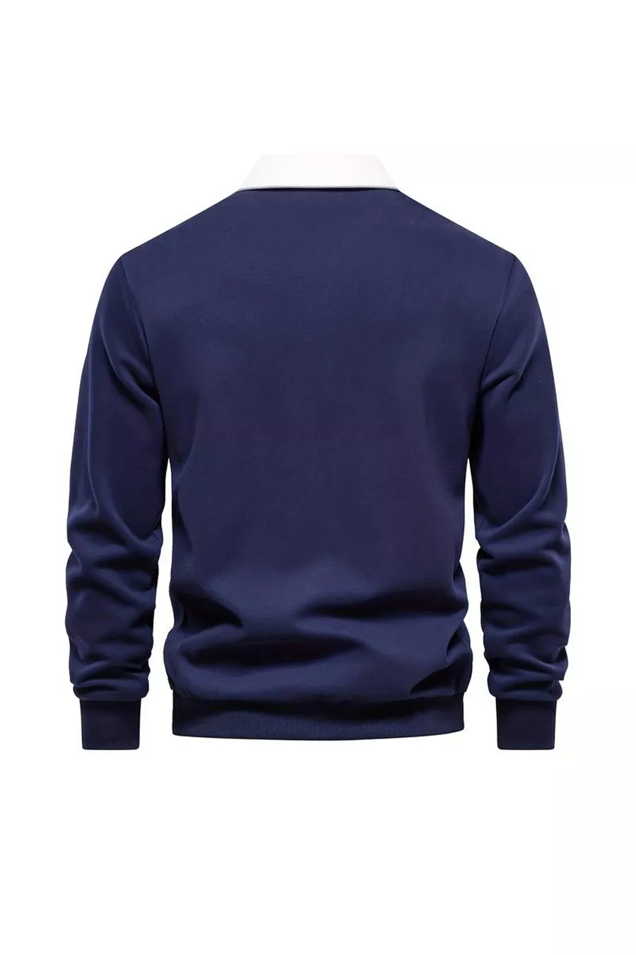 Ghassy Co. Erkek Retro Renk Bloklu Pamuklu Gömlek Yaka Sweatshirt