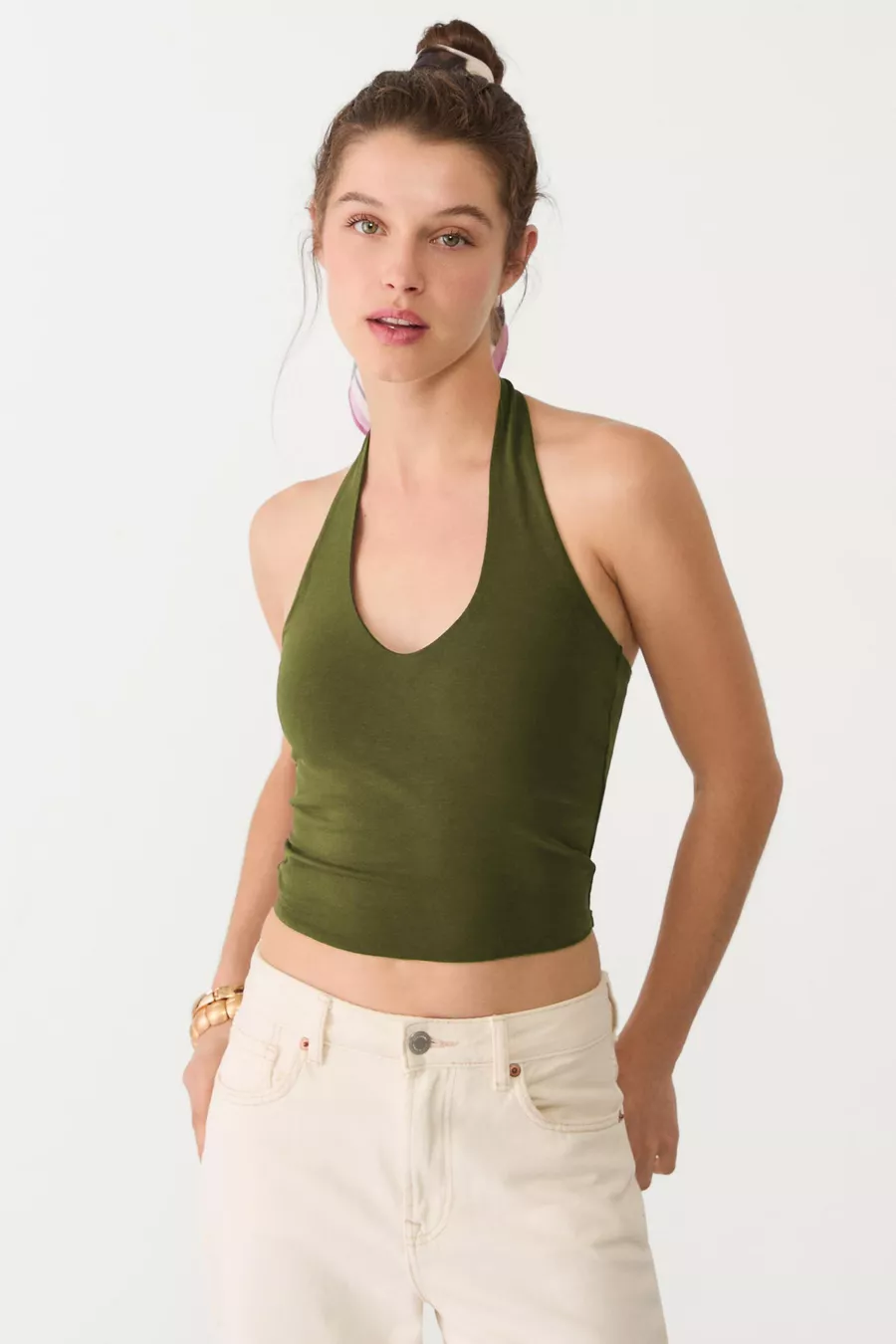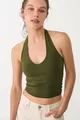 Haki % Pamuk Halter Yaka Çift Kat Crop Top Body