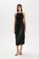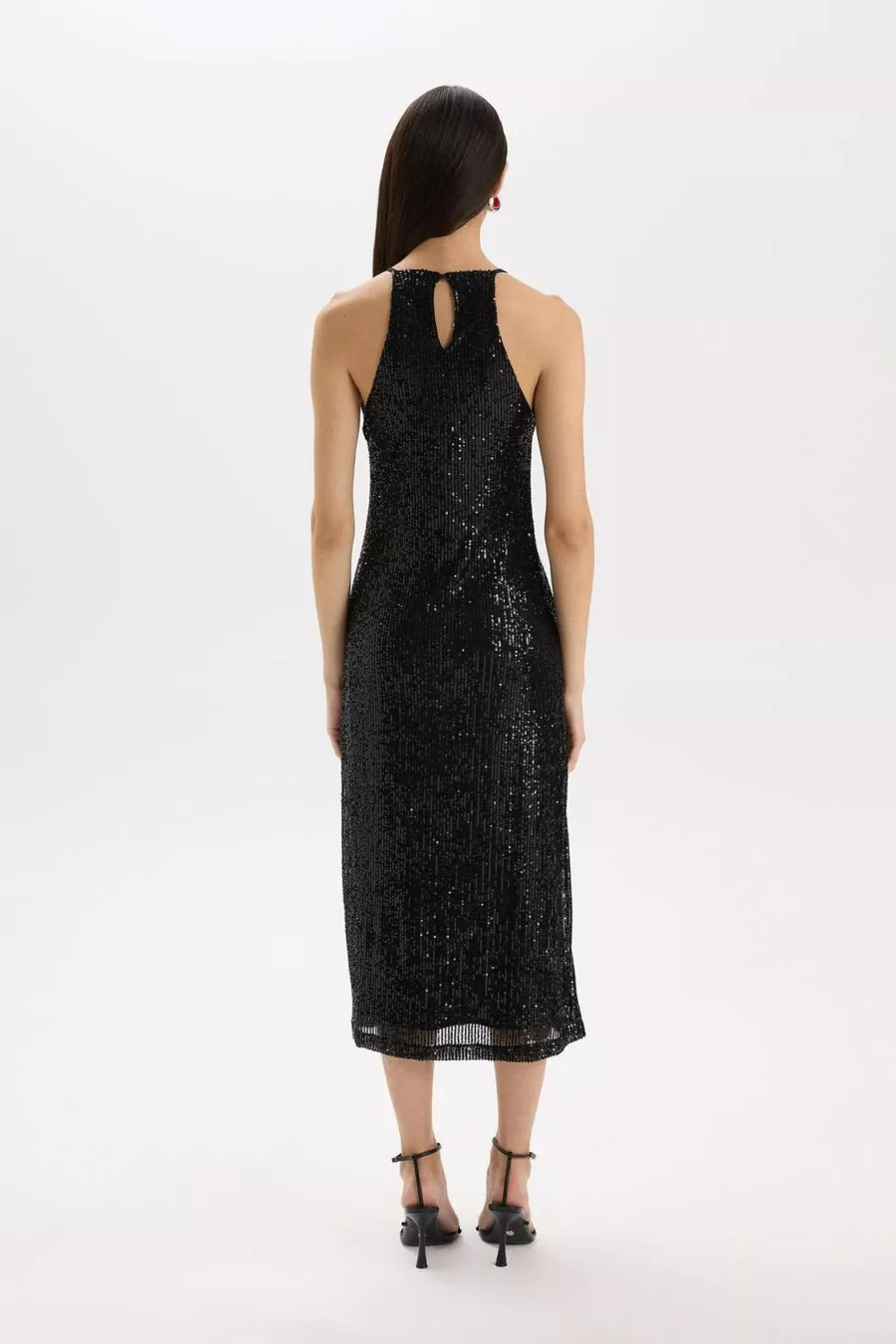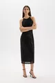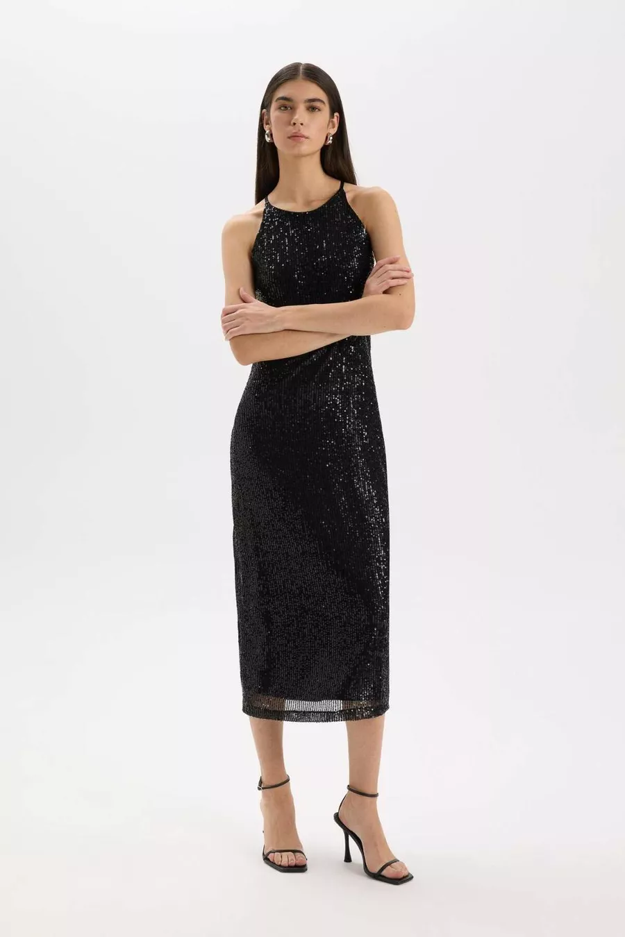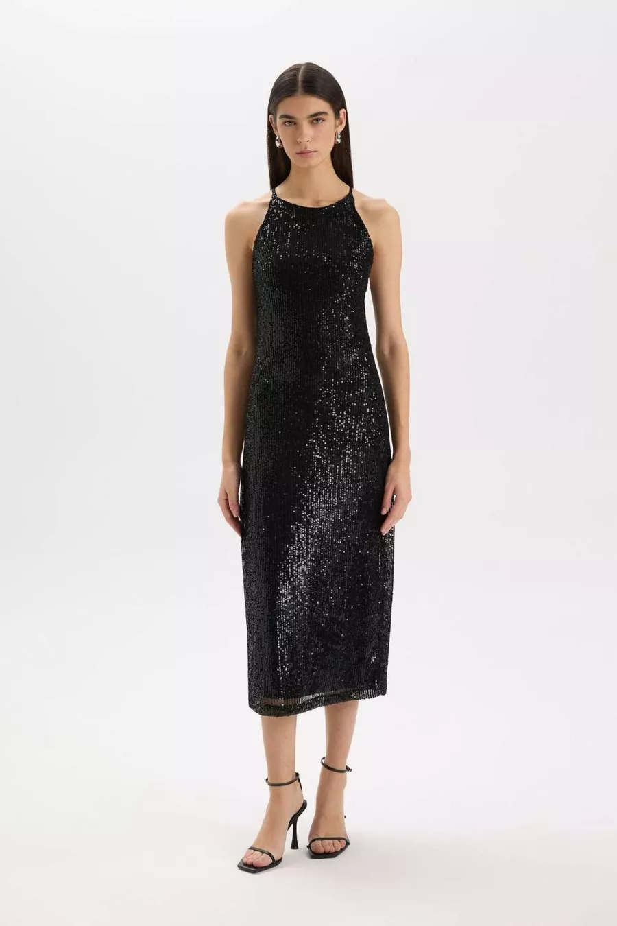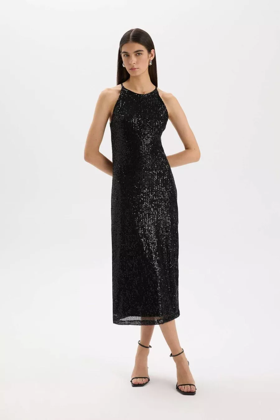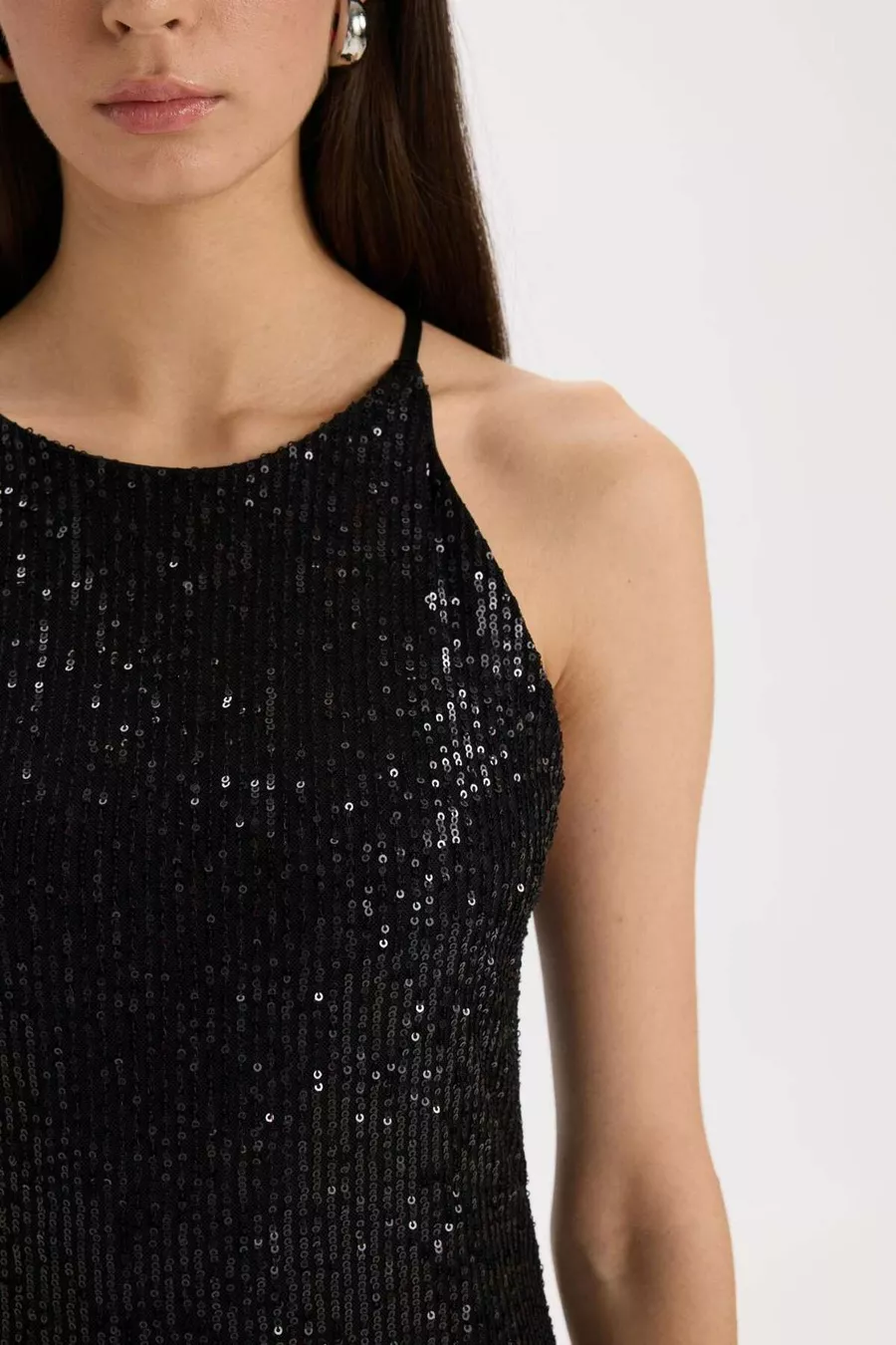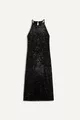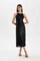 Halter Yaka Payetli Kolsuz Midi Siyah Abiye Elbise WN