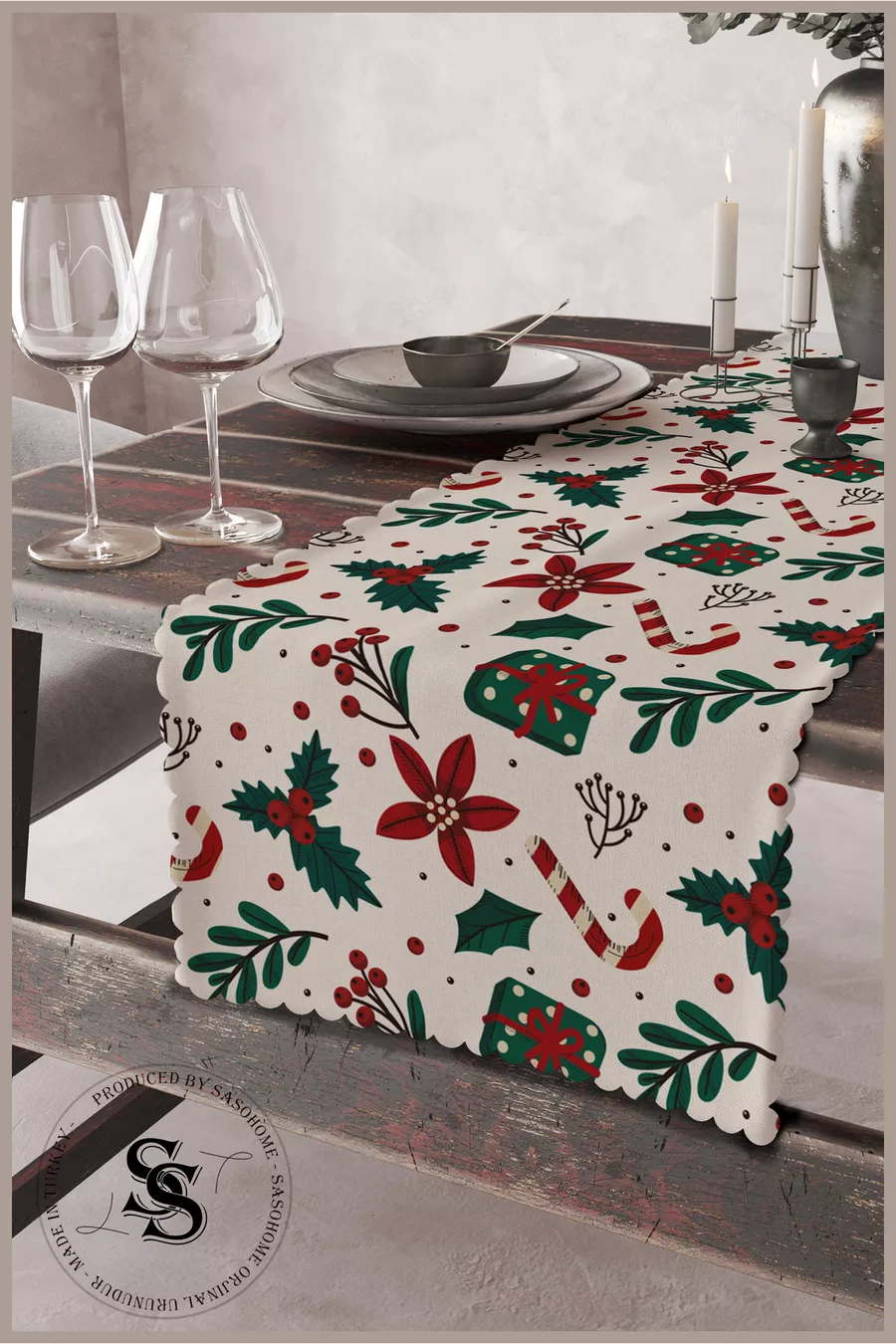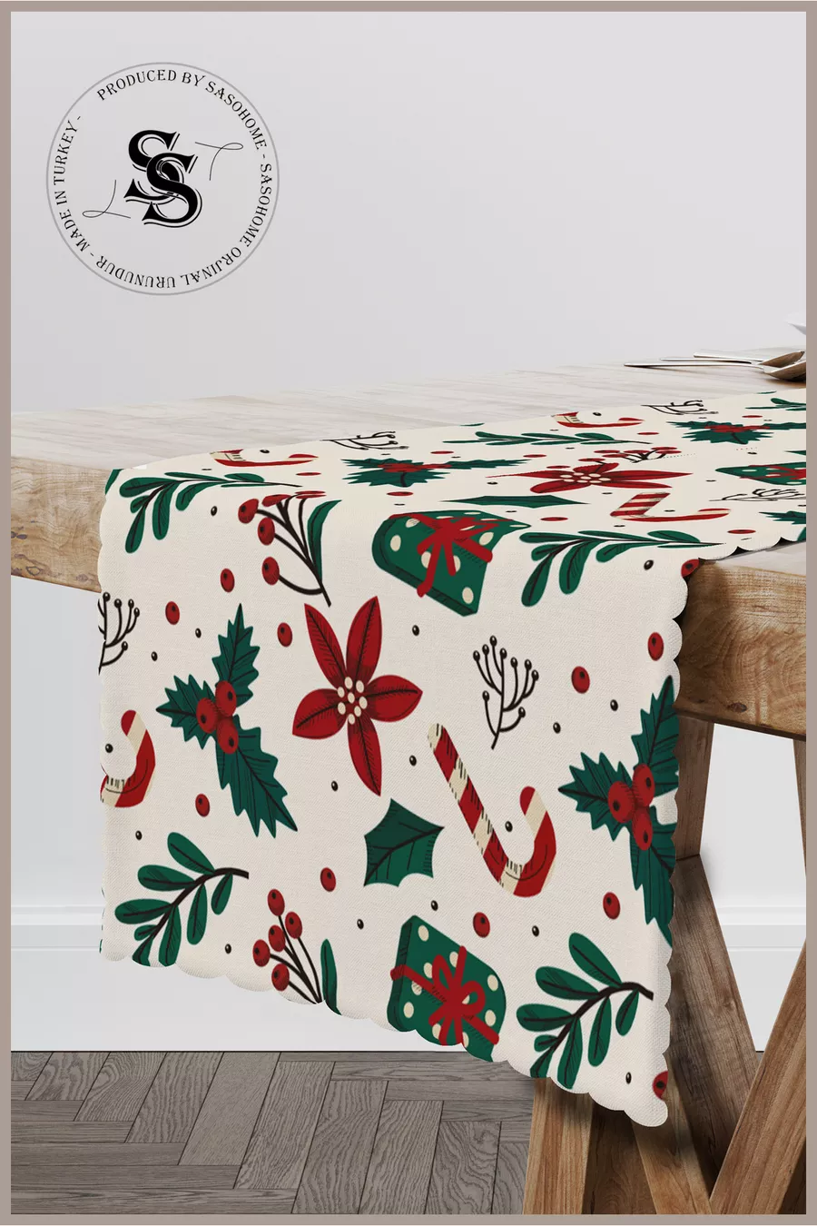 Happy New Year - Yılbaşı Süsleri Desenli Kaliteli Kadife Kumaş Cm Dekoratif Runner