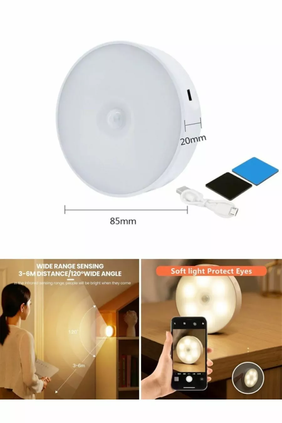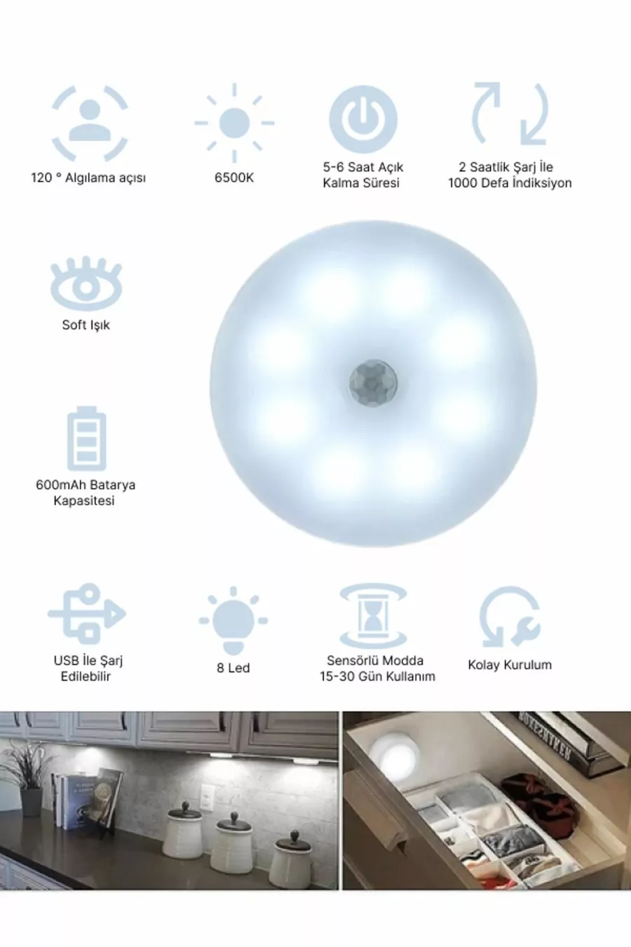 Hareket Sensörlü Beyaz Led Işık Lamba On/auto/off Modlu 8 Ledli Usb Şarjlı