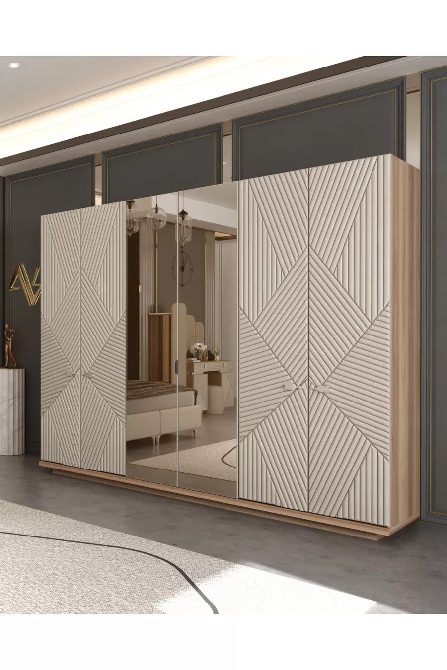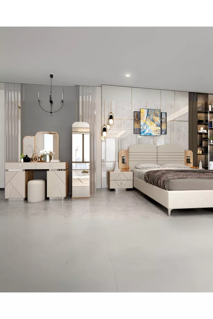 Set İçeriği:Karyola + 2 Komodin + Şifonyer + Gardırop + Ayna