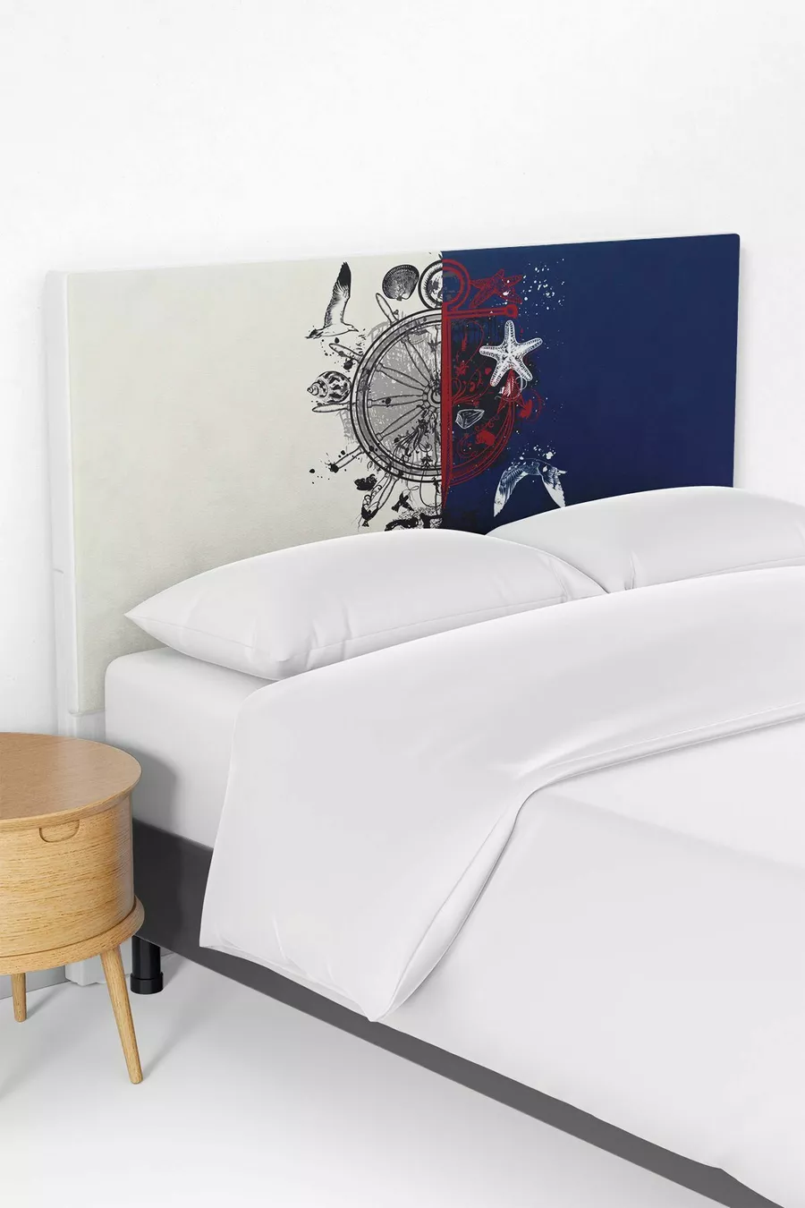 İki Renkli Denizci Desenli Çocuk Odası Yatak Baza Başlık Kılıfı