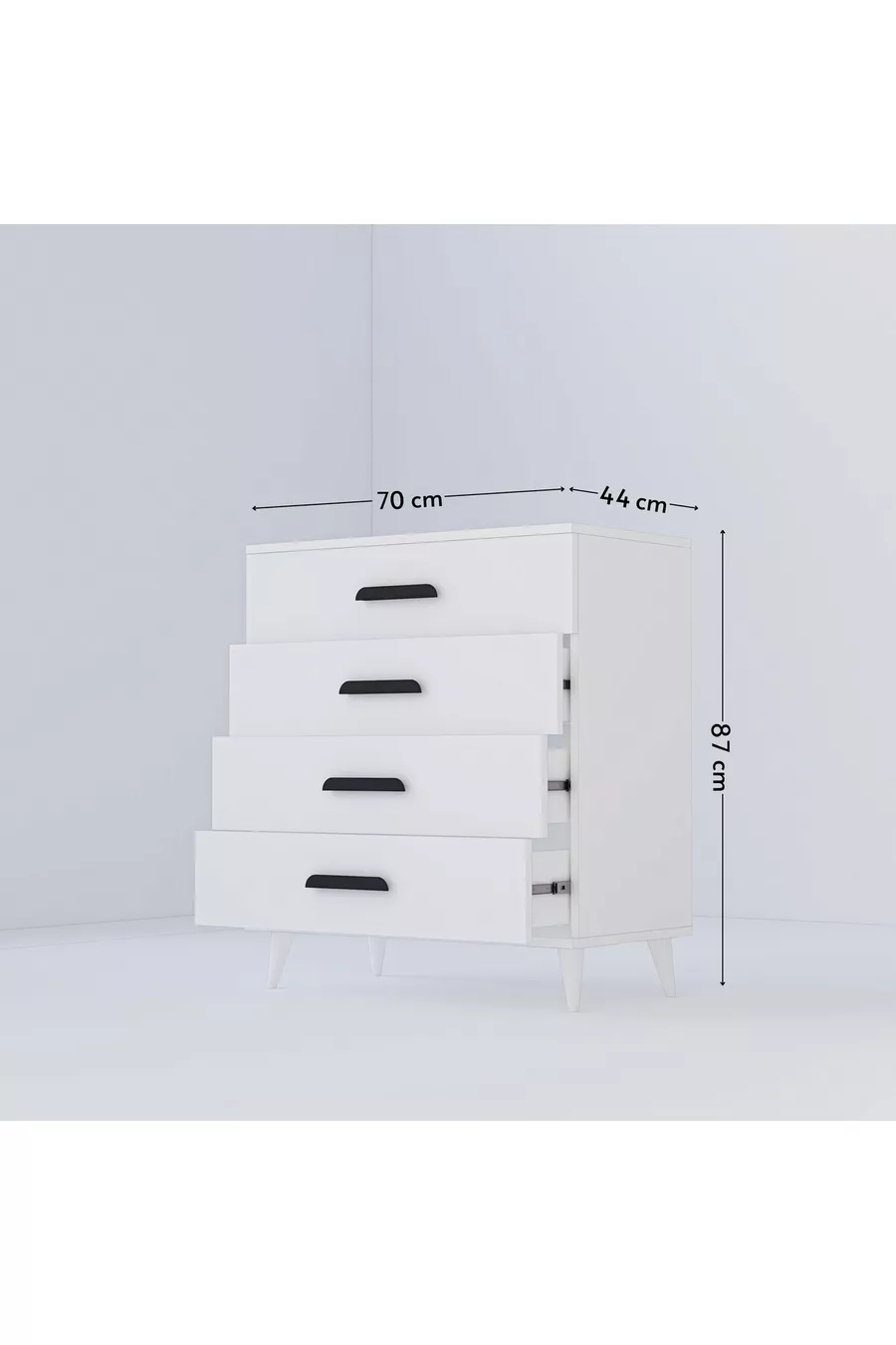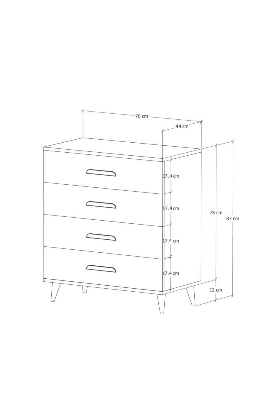 Renk:BeyazGaranti Süresi:2 YılMateryal:SuntalamYükseklik:87 cmGenişlik:70 cmDerinlik:44 cmÇekmece Sayısı:4Ürün Özelliği:ÇekmeceliStil:İskandinavTema / Stil:ModernÖzellik:Çekmeceli