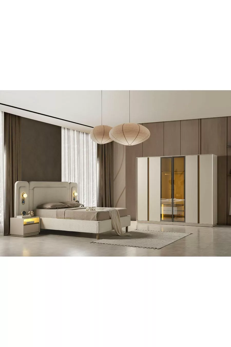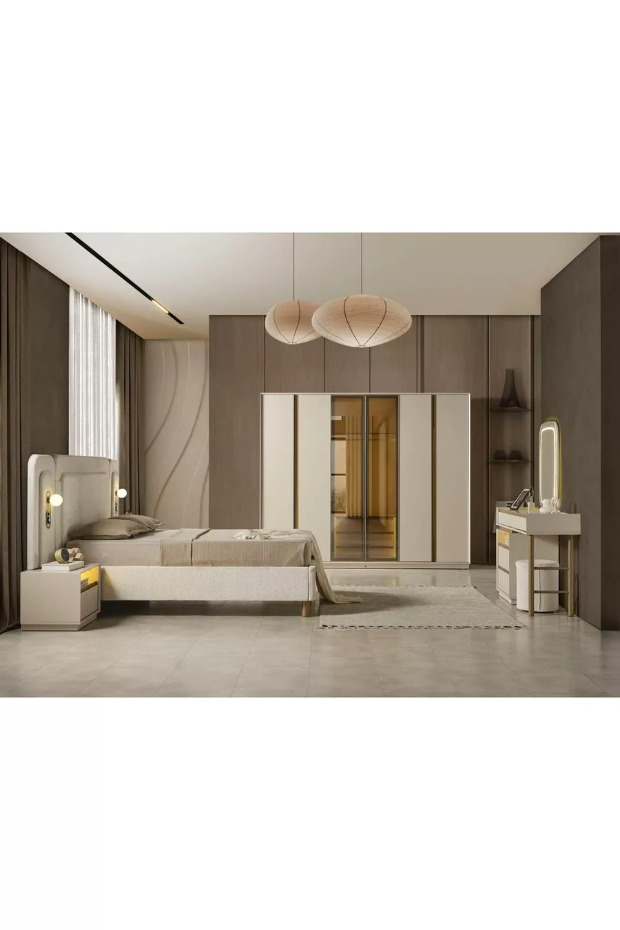 Set İçeriği:Karyola + 2 Komodin + Şifonyer + Gardırop