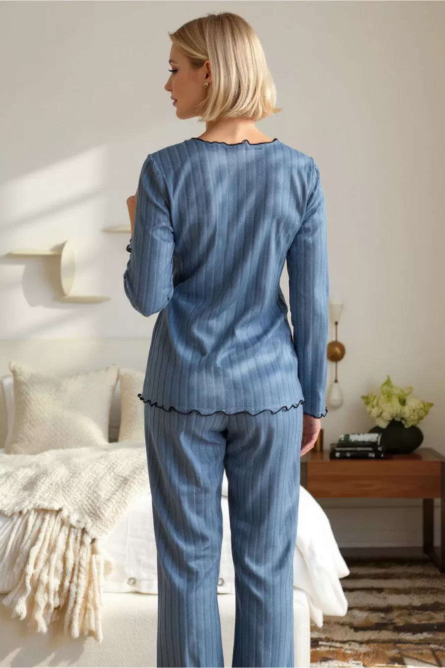 Kol Tipi:Uzun KolSürdürülebilirlik Detayı:HayırDesen:DüzYaka Tipi:V YakaPaça Boyu:UzunRenk:MaviMateryal:%100 PamukÜrün Tipi:DüzÜrün Detayı:PaçaKoleksiyon:HomewearAlt-Üst Takım:Gömlek-PantolonKol Boyu:UzunTeknik:ParçaKalıp:RelaxedKumaş Tipi:DokumaBel:Normal BelDokuma Tipi:KaşkorseParça Sayısı:2 ParçaSiluet:BasicPersona:Fashion ForwardOrtam:Lounge/HomeEk Özellik:Ek Özellik Mevcut DeğilMateryal Bileşeni:%100 PamukYıkama Talimatı:T09Paça Tipi:Düz PaçaPaket İçeriği:2'liBoy:UzunSezon:YazMenşei:TRKapama Şekli:Full Düğme Kapama