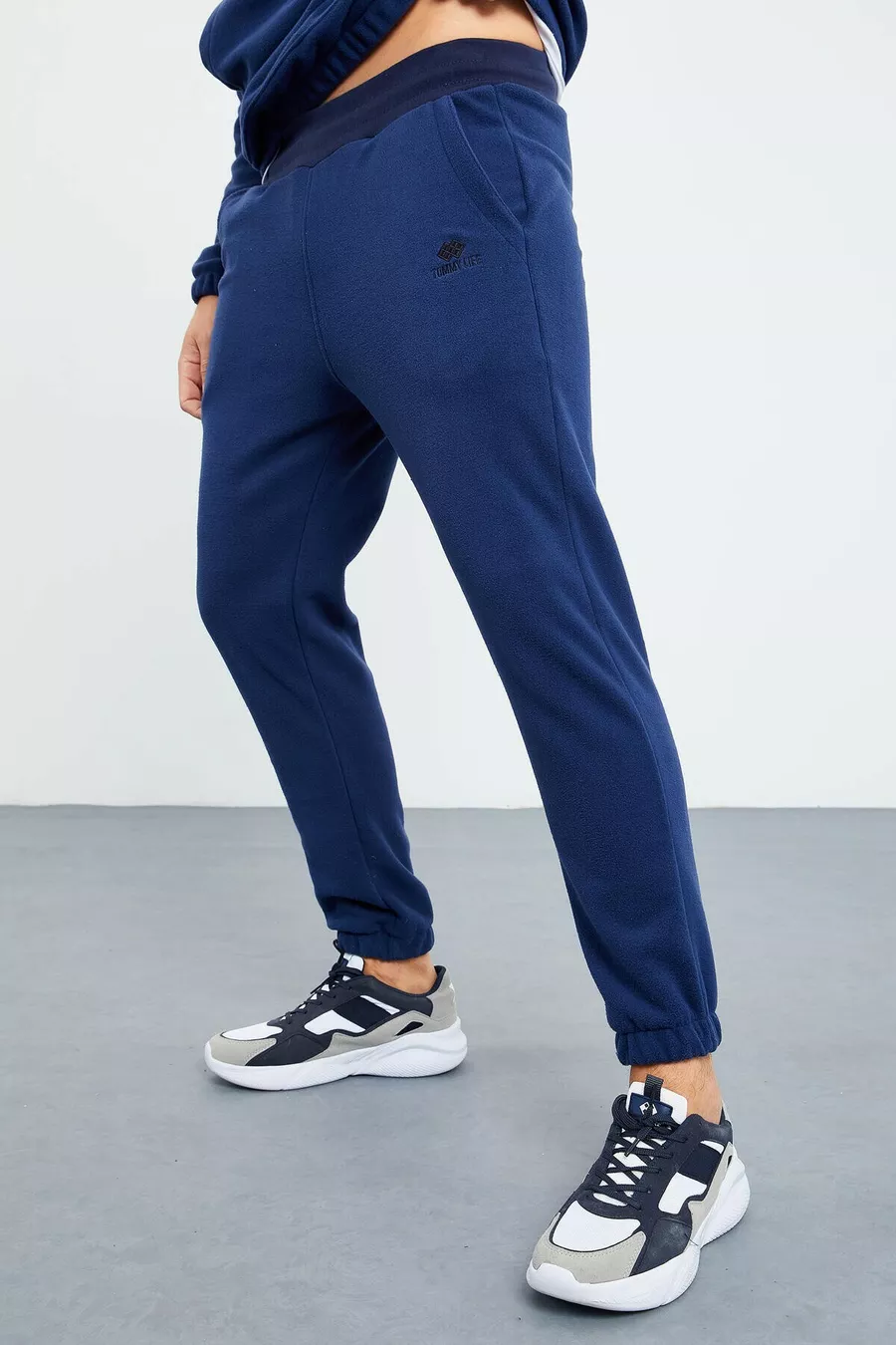 İndigo Yarım Fermuar Dik Yaka Lastik Paça Polar Erkek Eşofman Takımı -