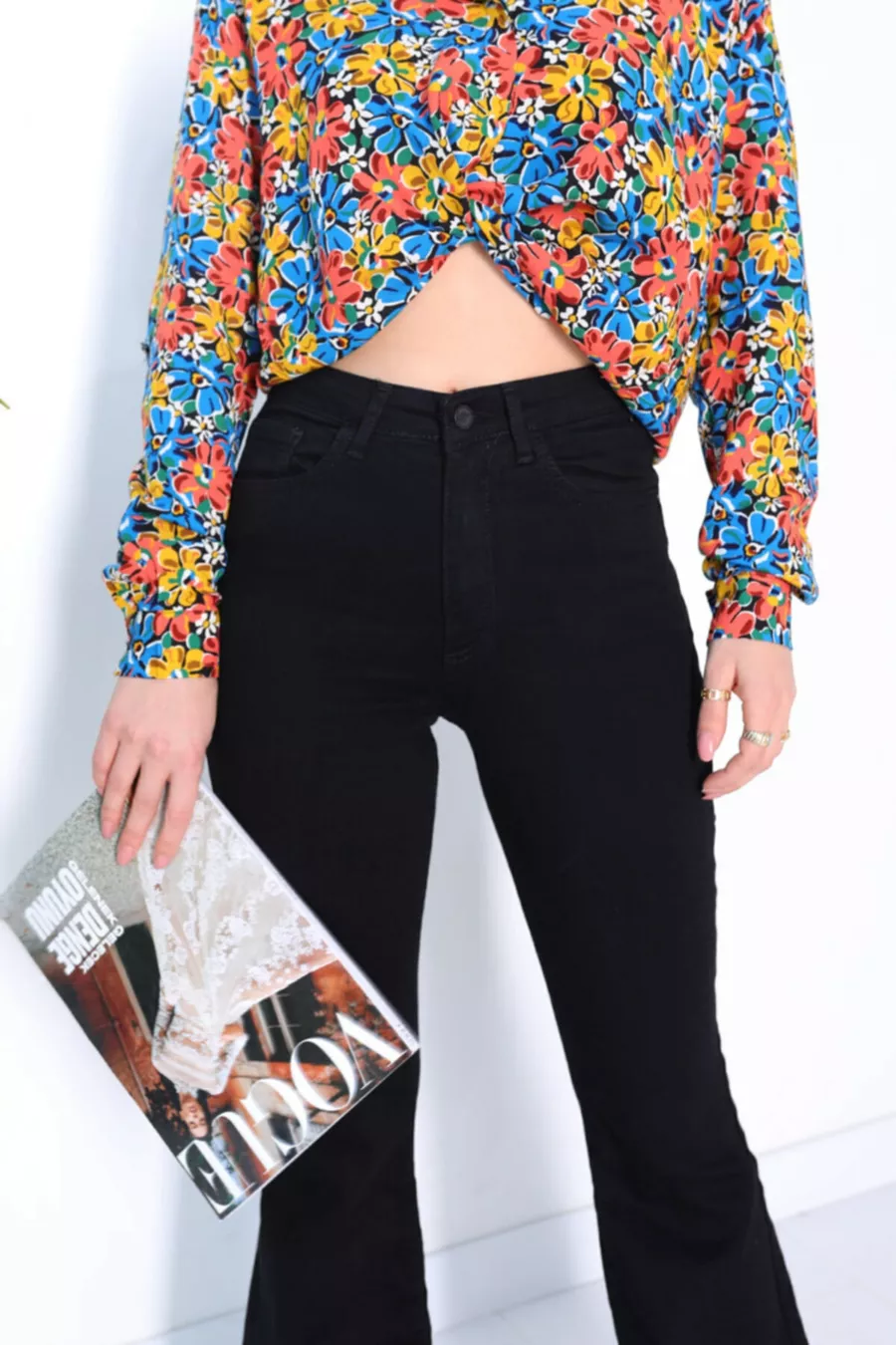 Ispanyol Paça Siyah Jean Ekstra Likra Yüksek Bel Uzun Bacak (toparlayıcı)