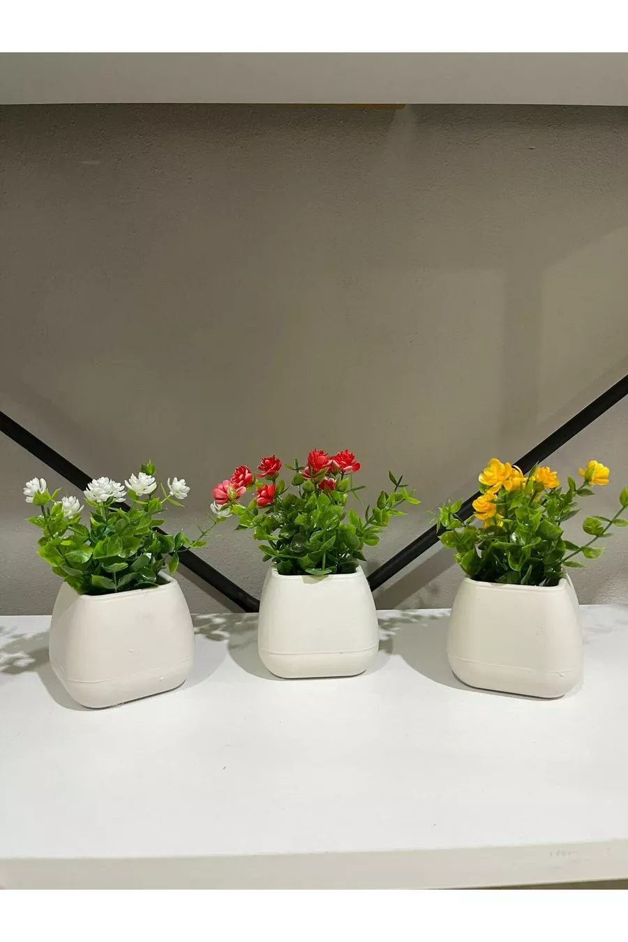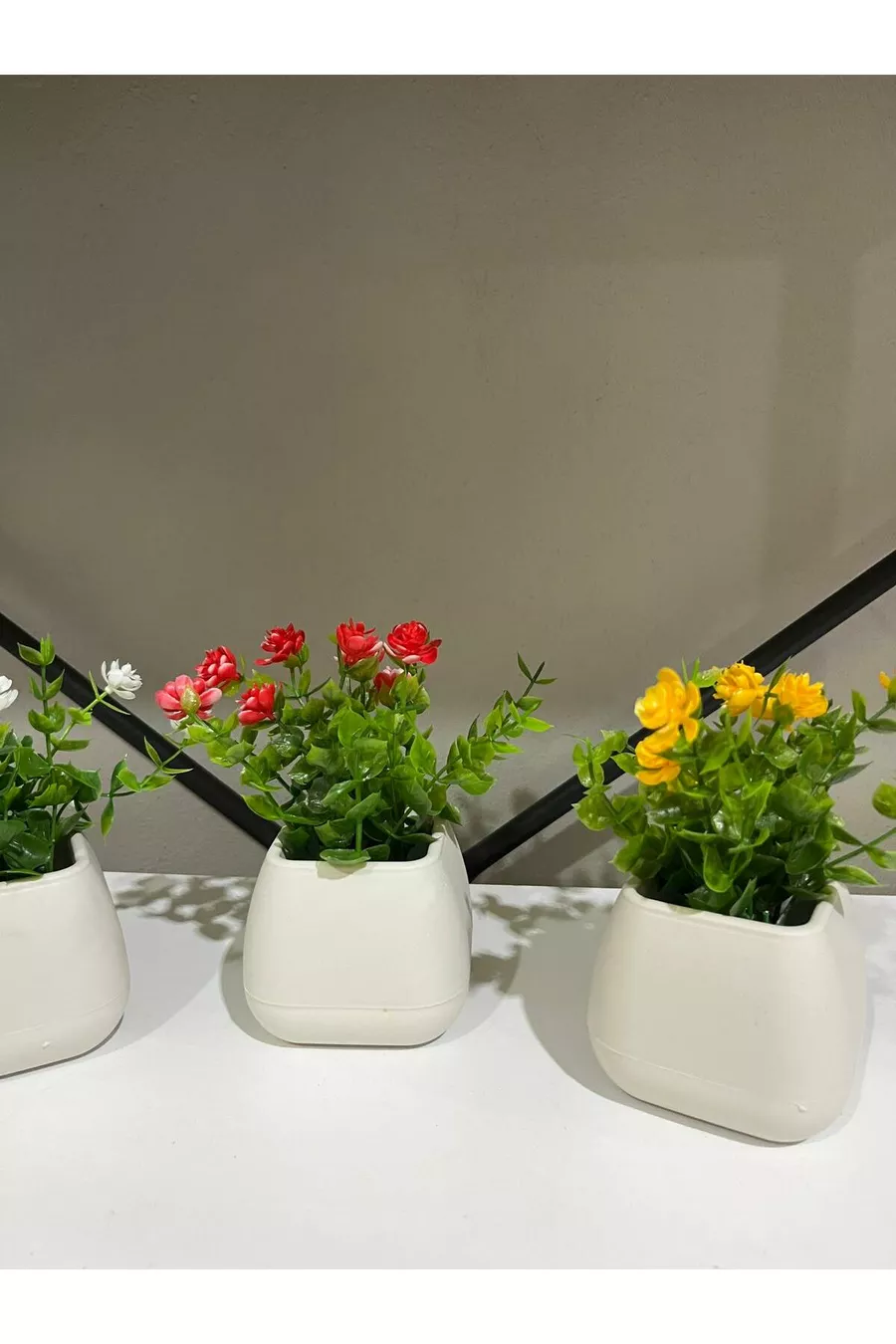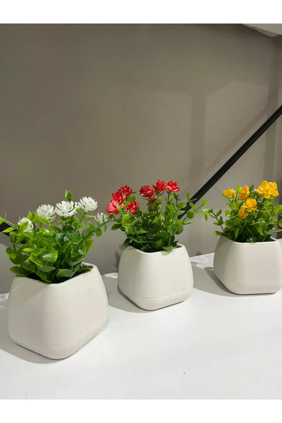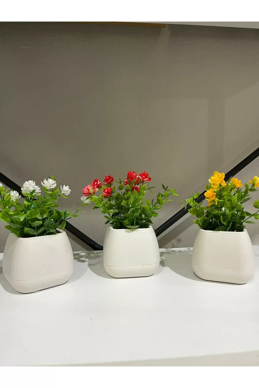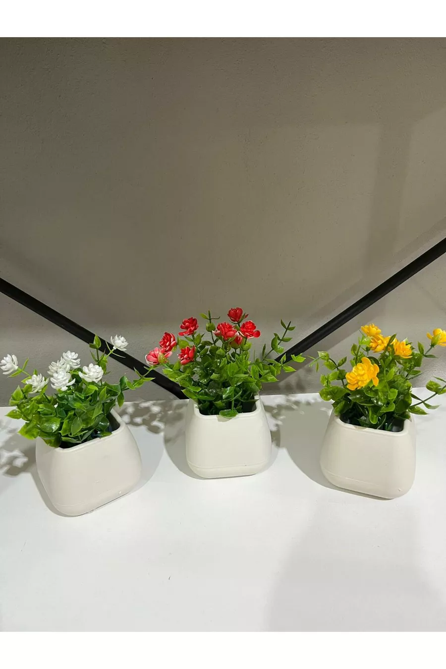 Küçük Boy Saksıda Yapay Çiçek Bitki 3 Adet, Gerçekçi Yapay Çiçek Masa Dekoru