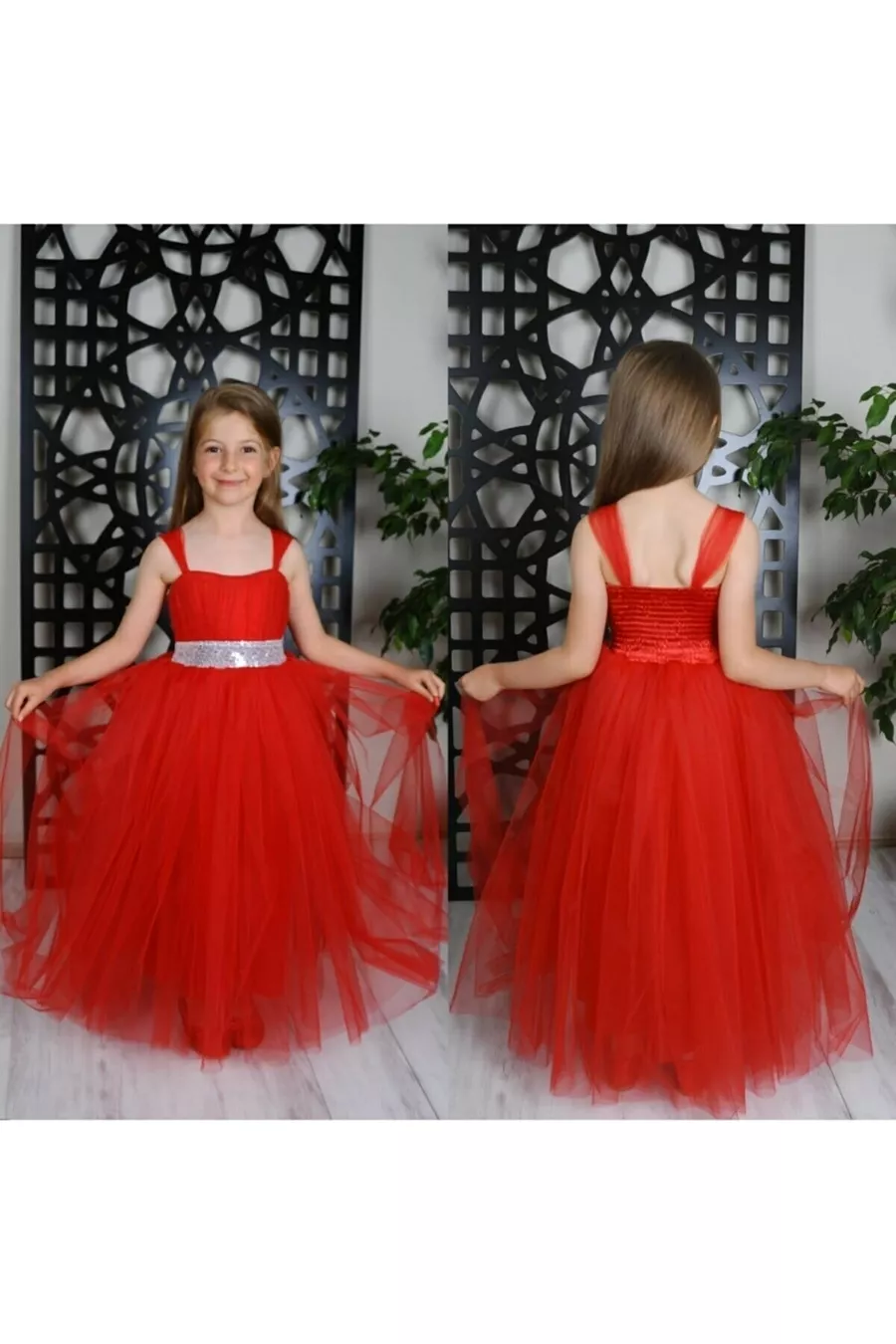 Kız Çocuk Uzun Pamukkoza Kırmızı Abiye Elbise