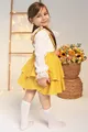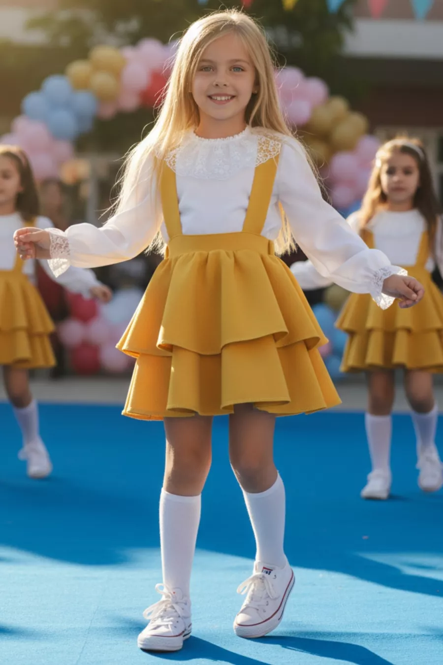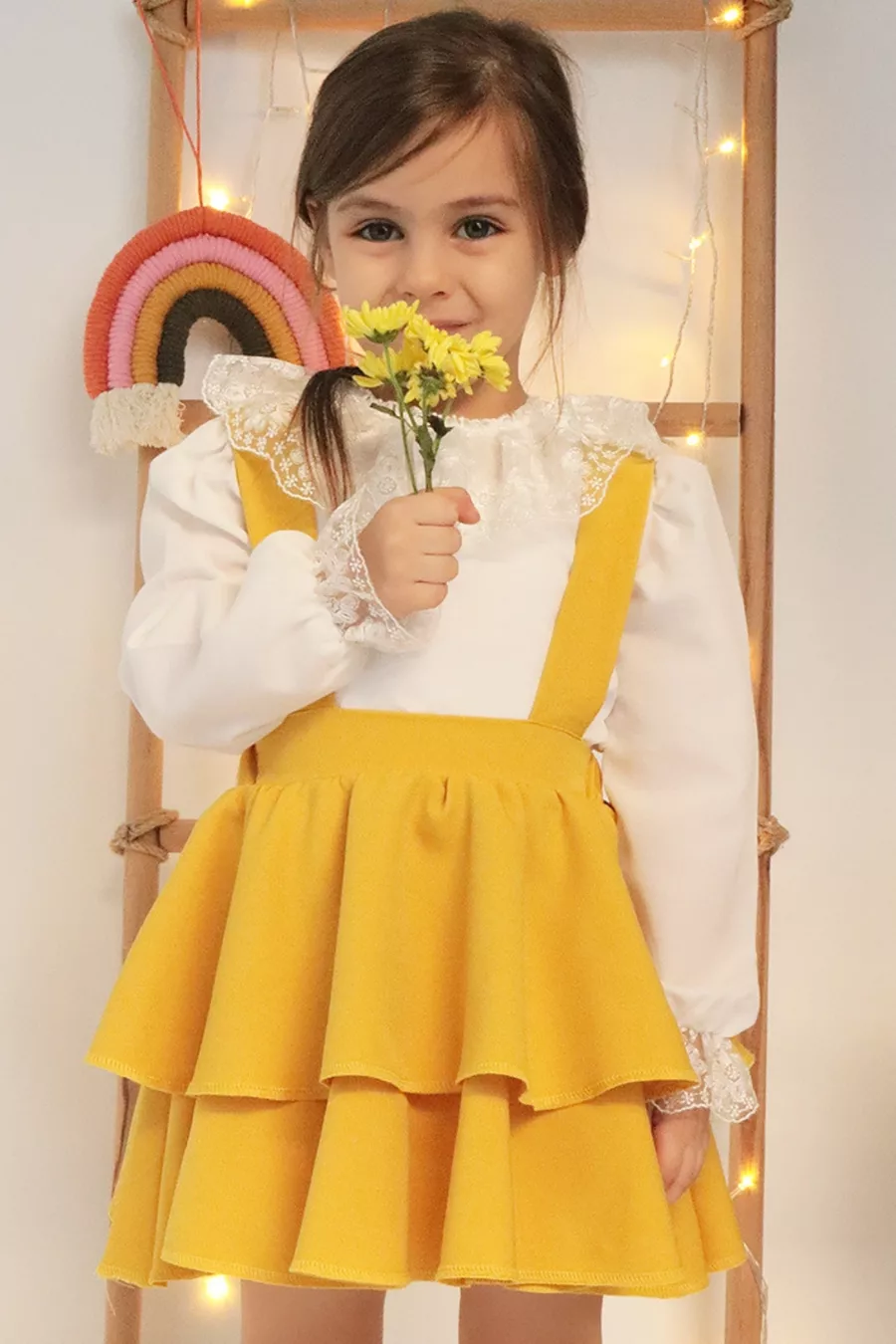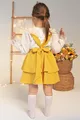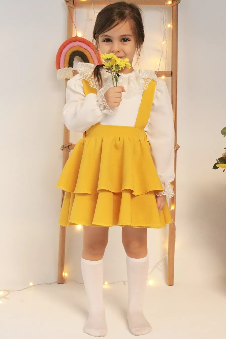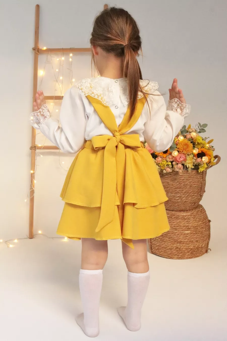 Kız Çocuk Sarı Helen Elbise Jile Dantel Bluz Nisan Ekim Gösteri Kıyafeti Uzun Kollu