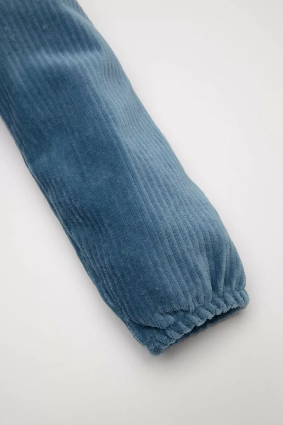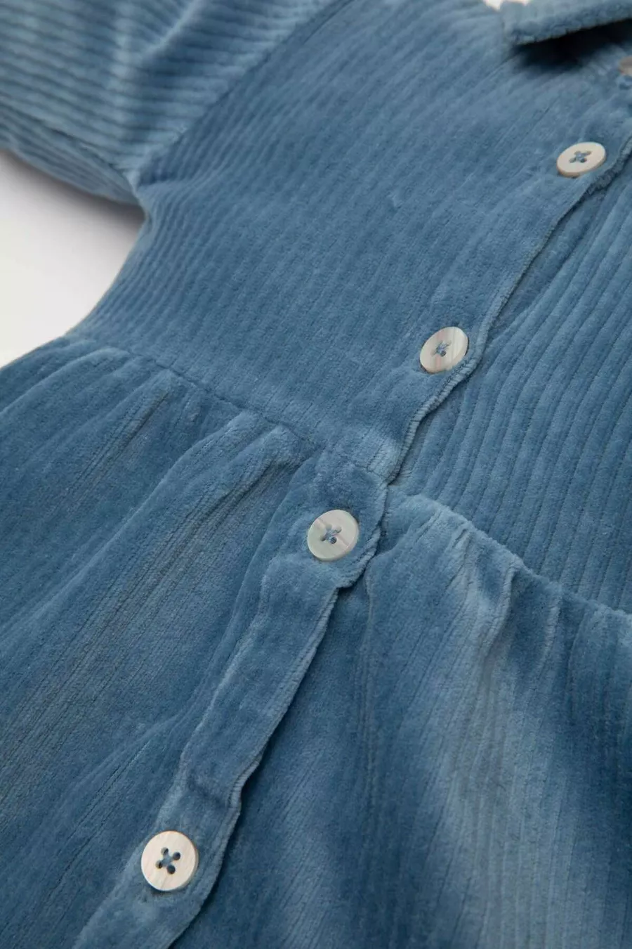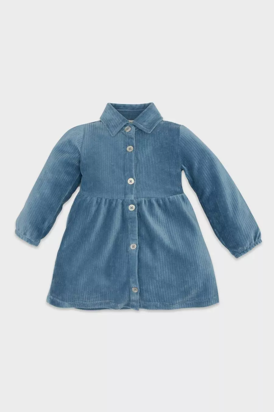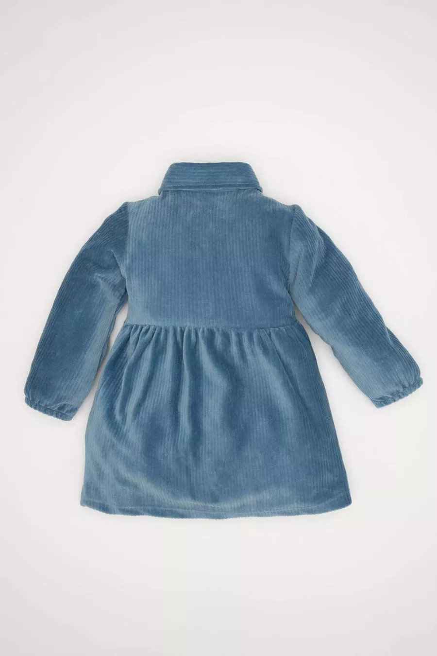 Kız Bebek Uzun Kollu Düğmeli Fitilli Kadife Elbise WN