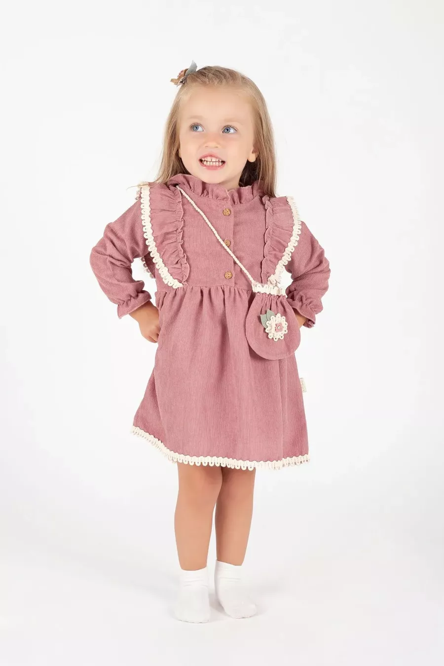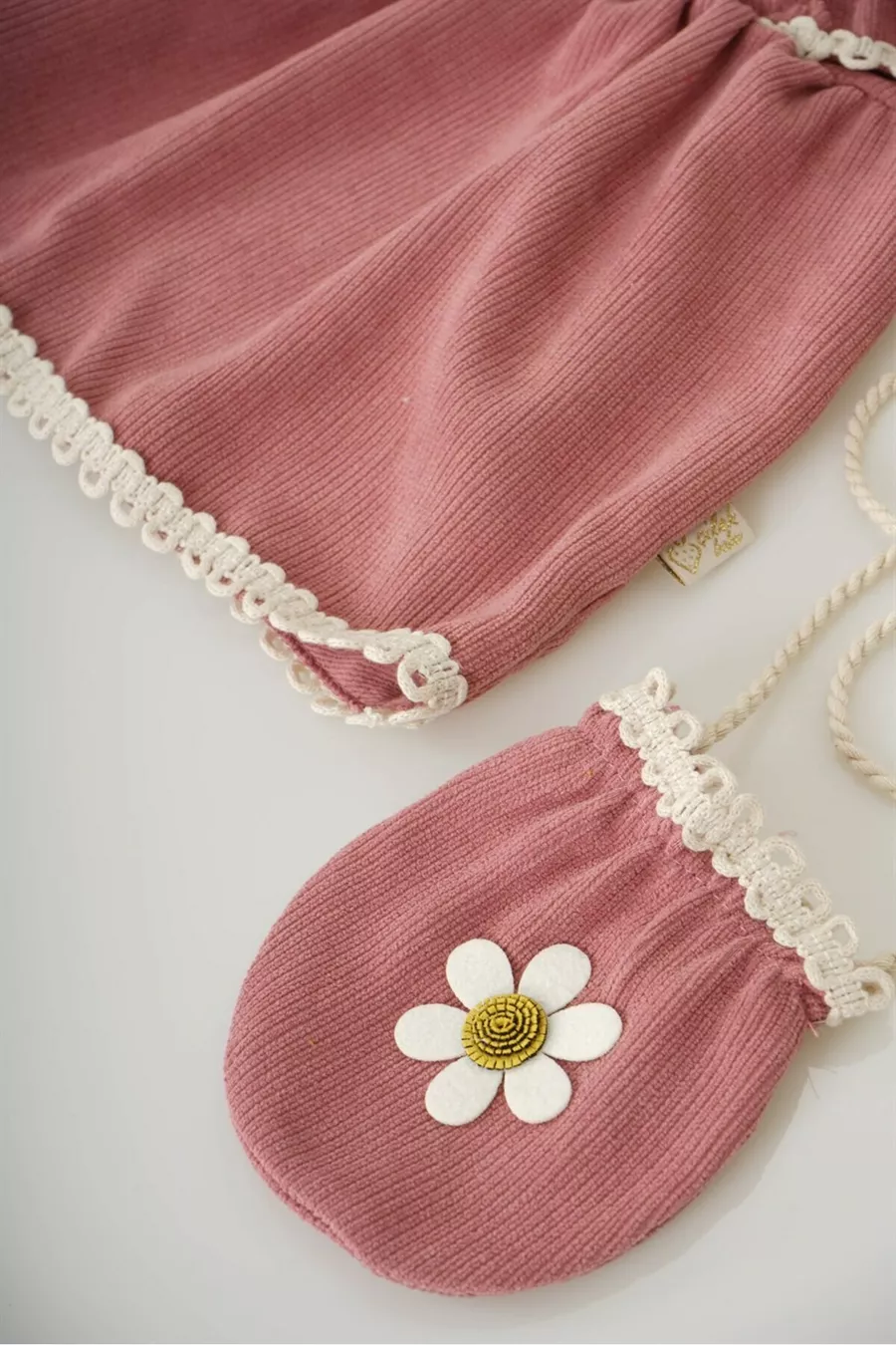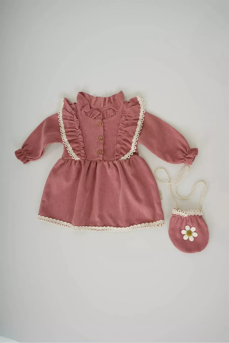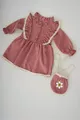 Kız Bebek Uzun Kol Papatya Desenli Çantalı Elbise