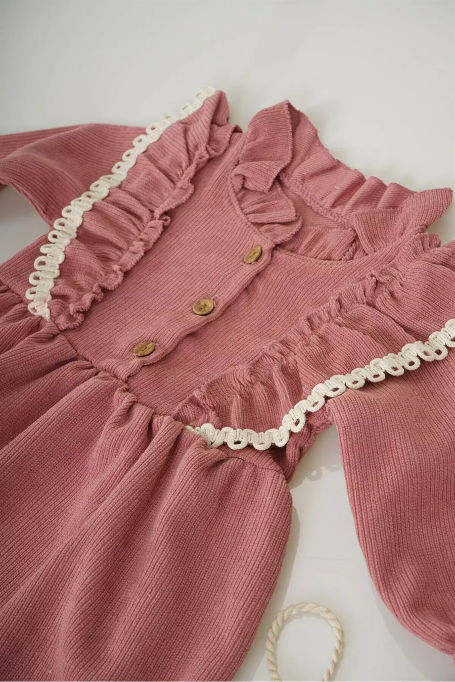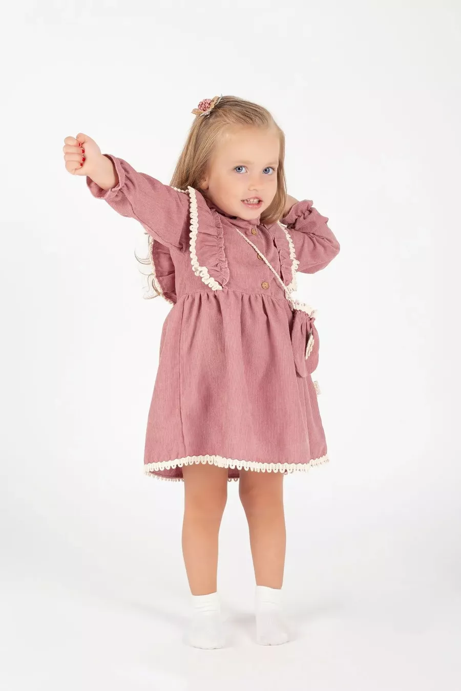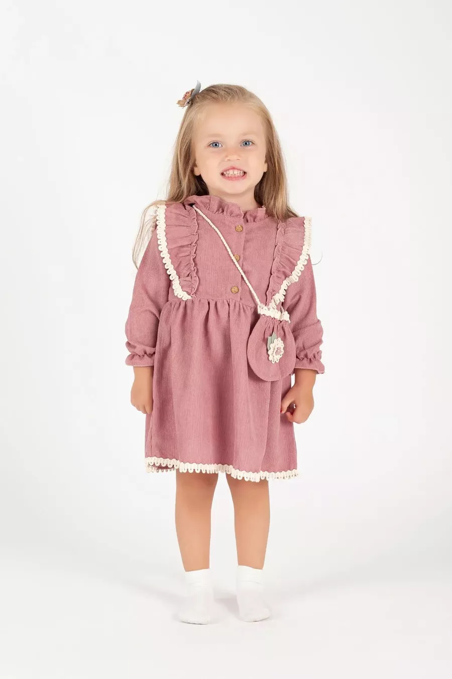 Kız Bebek Uzun Kol Papatya Desenli Çantalı Elbise