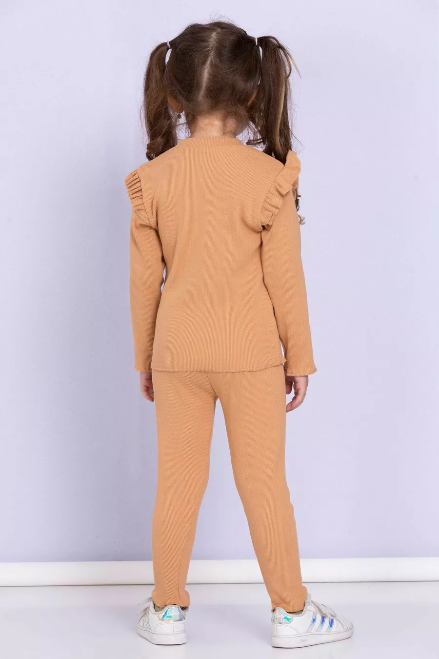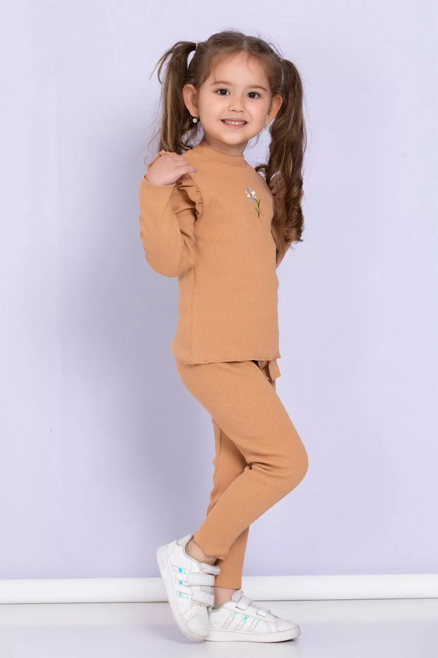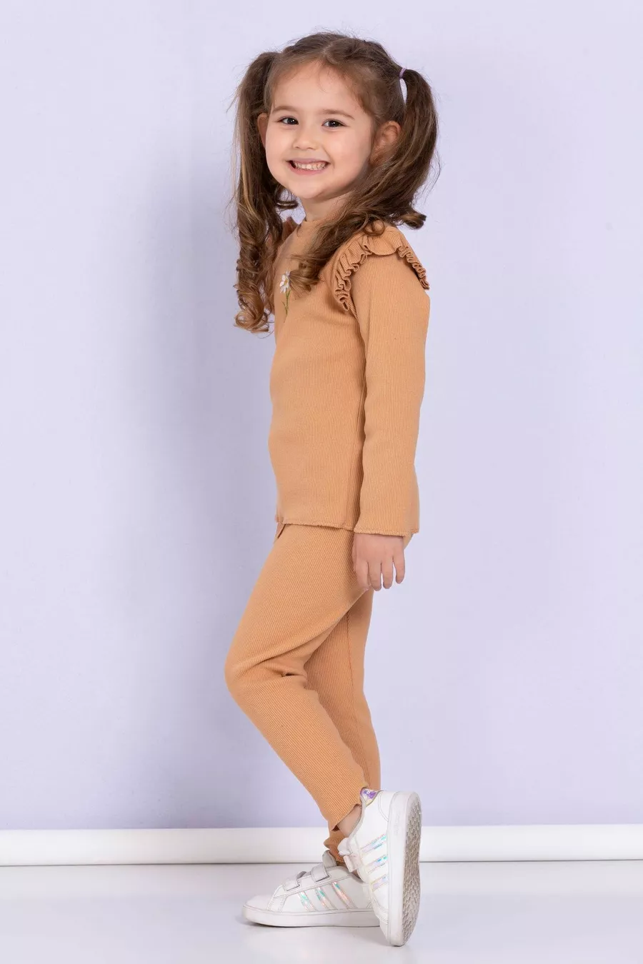 Kız Bebek Çocuk Papatyalı Fitilli Kaşkorse Uzun Kollu Tayt 2'li Takım