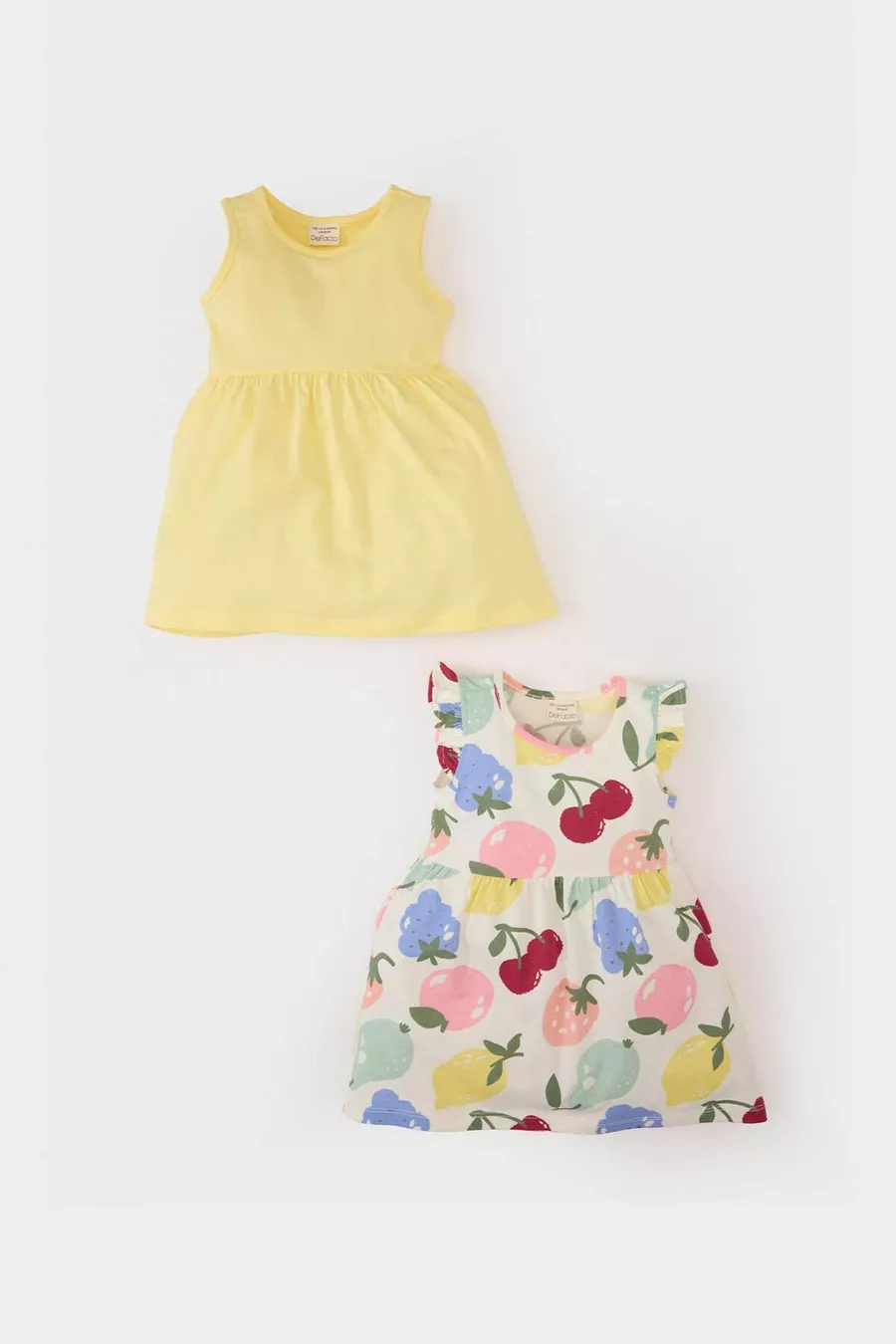 Kız Bebek Desenli Kolsuz 2li Elbise SM