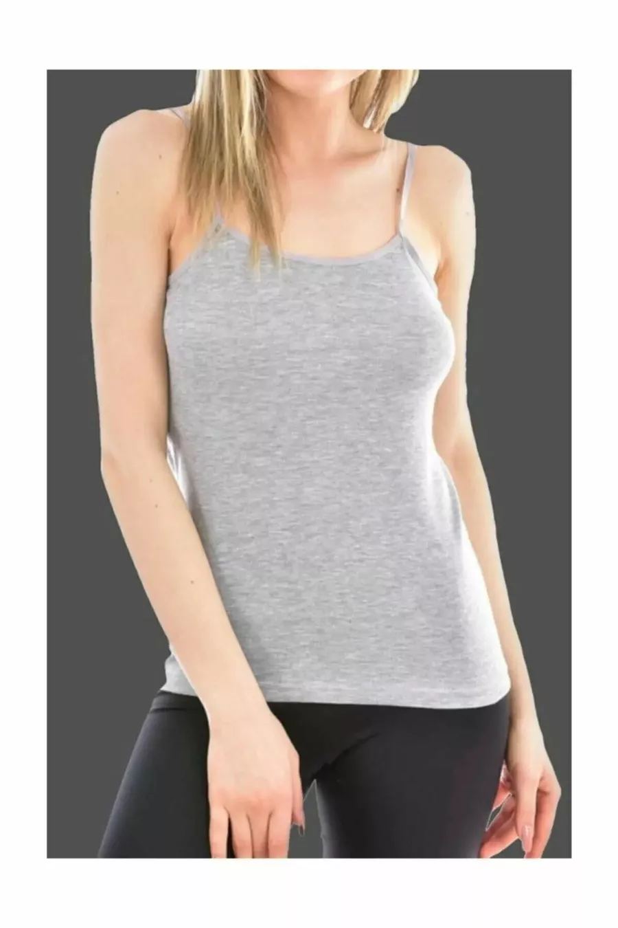 Kadın Gri 6'lı Paket Pamuklu Ribana Ip Askılı Atlet