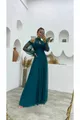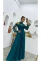 kadın petrol tül drapeli uzun abiye elbise NBSWLL07
