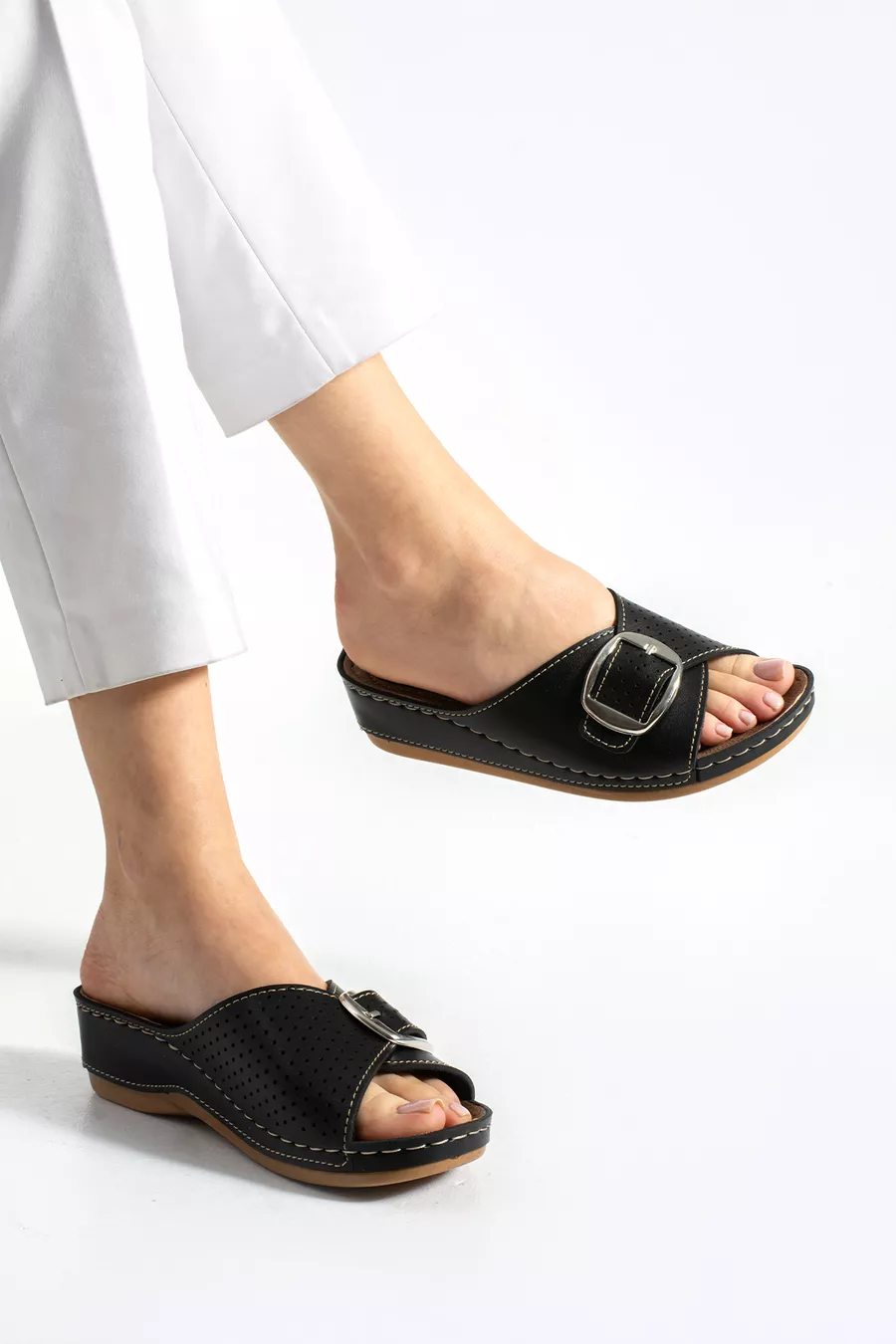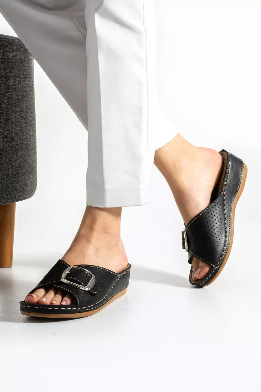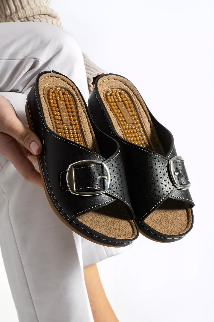 Kadın Terlik Tokalı Silikonlu Topuk Dikeni Terliği