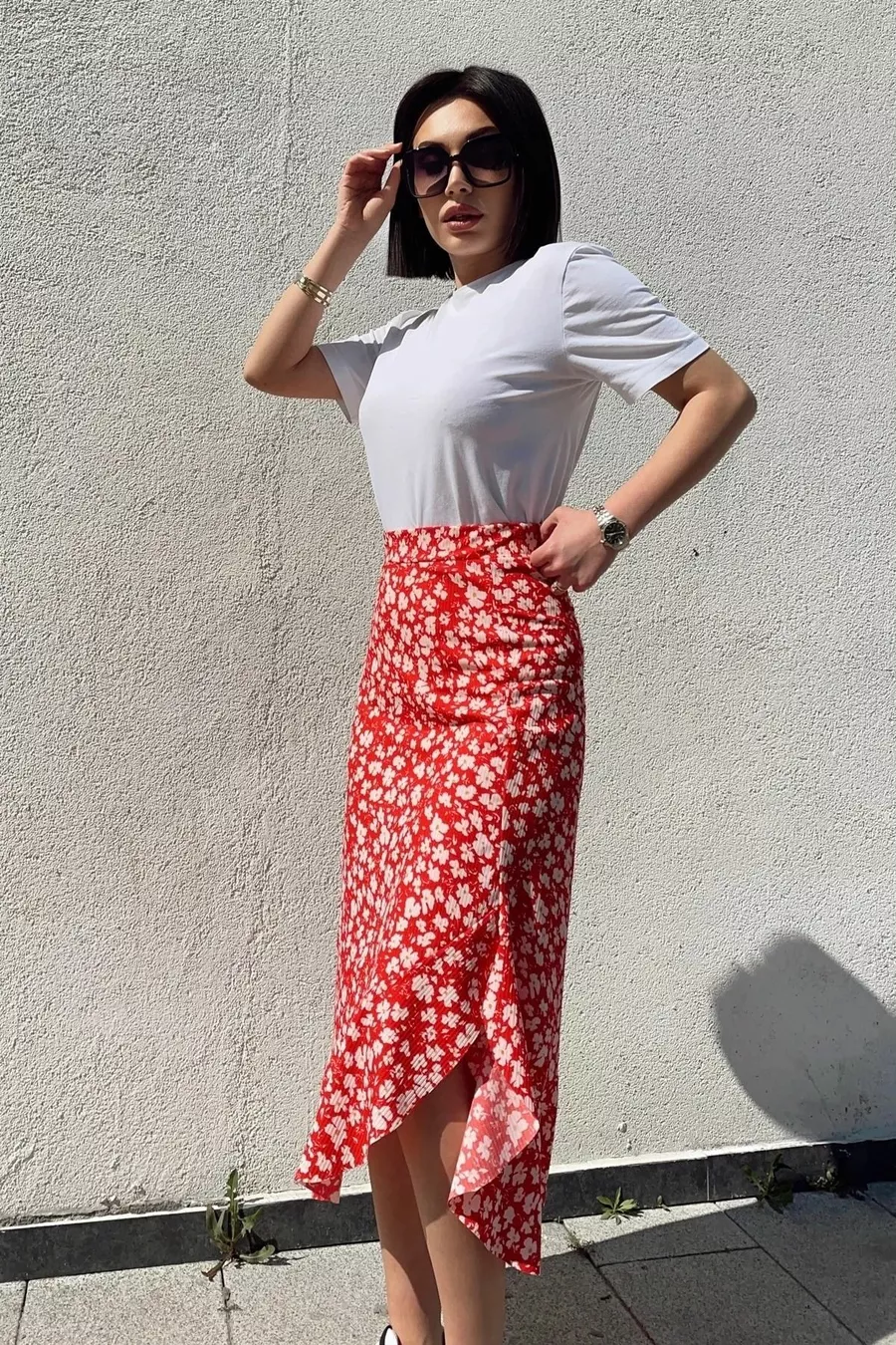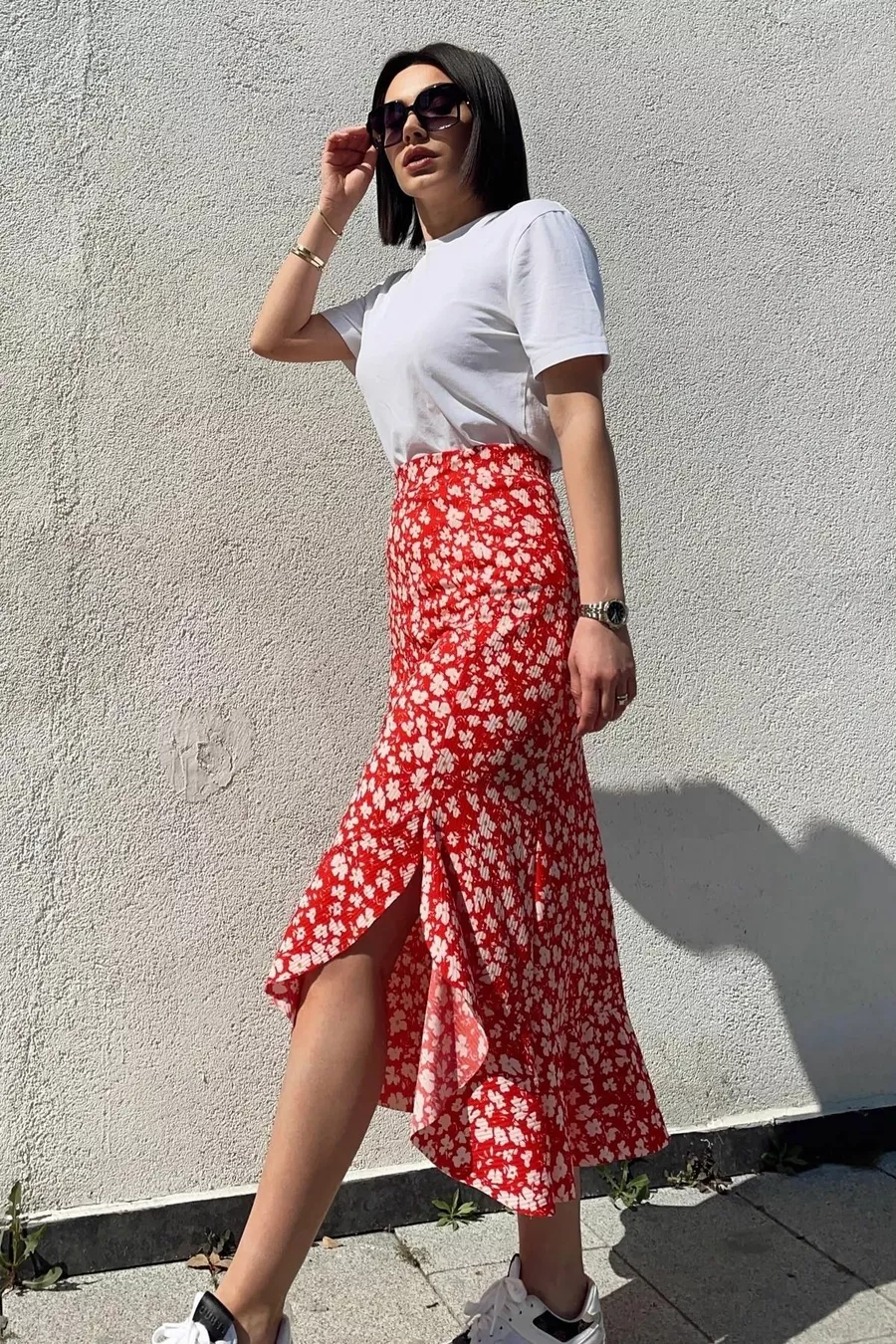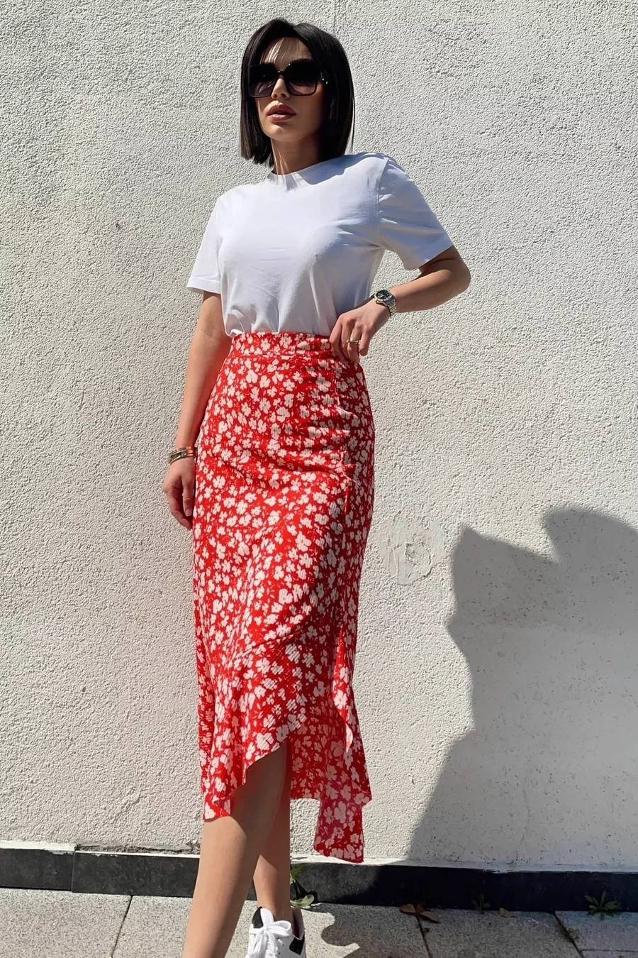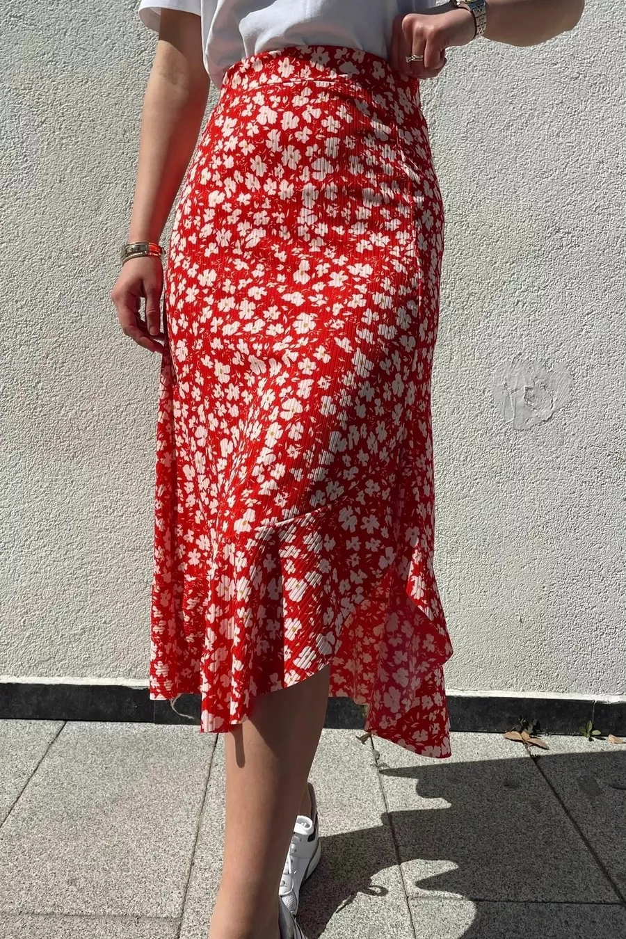 Kumaş: Viskon Kalıp: Tam Arka Boy: 87 cm Yırtmaç Boy: 65 cm Ürün İçeriği: Beli LastikliÇakıl Taş DesenliEteği Volanlı