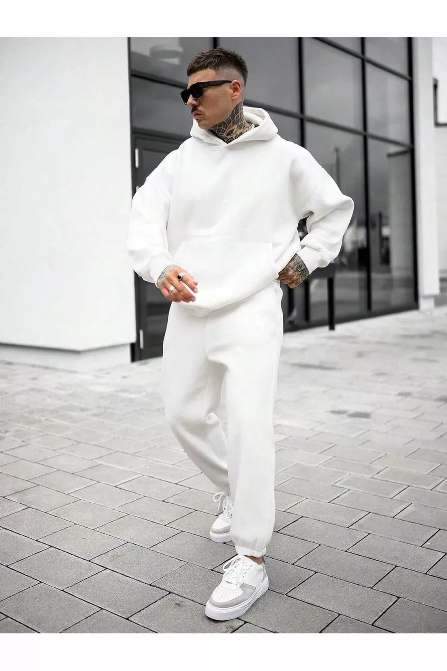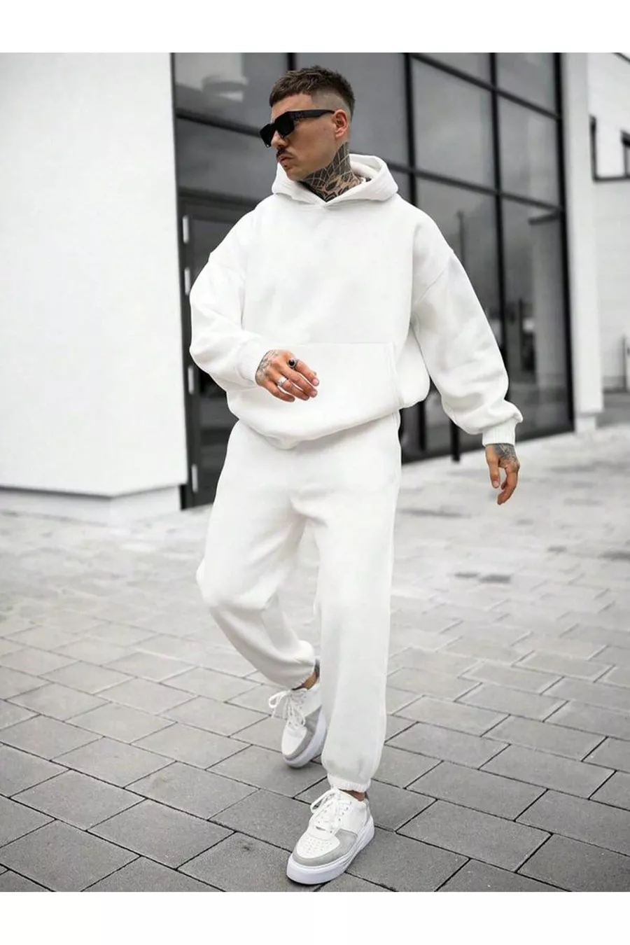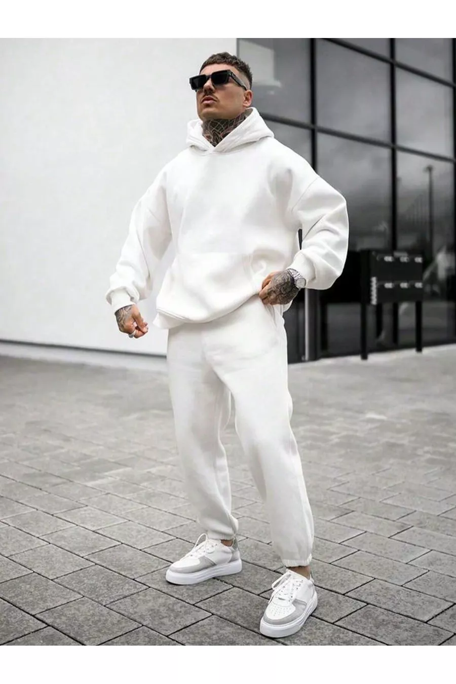 Kapüşonlu, Oversize, Yüksek Bel, Içi Polarlı Kumaş Kadın Eşofman Takımı