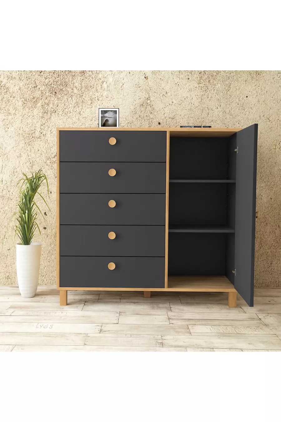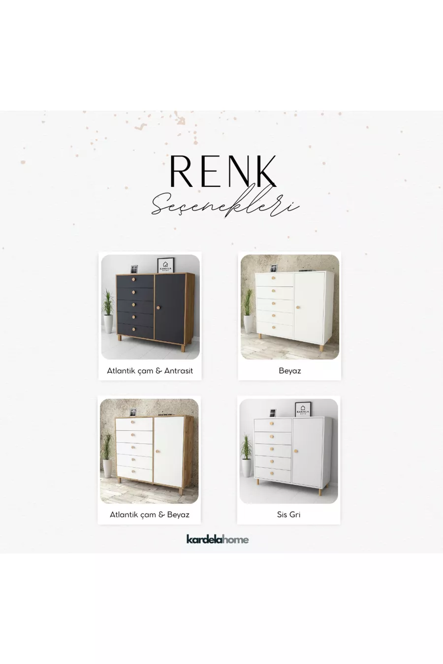 Renk:Çok RenkliGaranti Süresi:7 YılMateryal:MDFYükseklik:110 cmGenişlik:100 cmDerinlik:40 cmÇekmece Sayısı:5Ürün Özelliği:Kapaklı ve ÇekmeceliStil:CountryTema / Stil:İskandinavMenşei:TRÖzellik:Dolaplı