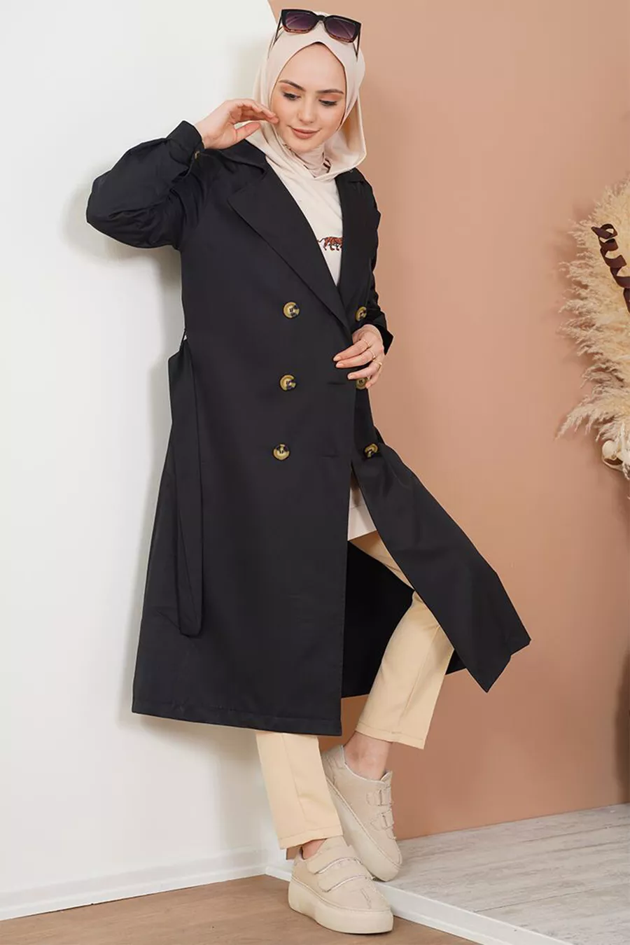 Kol Boyu:UzunKalıp:RegularDesen:DüzKumaş Tipi:DenimMateryal:Viskon KarışımlıRenk:SiyahYaka Tipi:KruvazeEk Özellik:Ek Özellik Mevcut DeğilKol Tipi:Standart KolCep:2Ortam:Casual/GünlükKapama Şekli:DüğmeliSiluet:KruvazeSürdürülebilirlik Detayı:HayırBoy:StandartAstar Durumu:AstarsızKemer/Kuşak Durumu:KemerliMateryal Bileşeni:%100 PolyesterKoleksiyon:Tesettür GiyimYıkama Talimatı:Type 2Sezon:Tüm SezonlarMenşei:TR