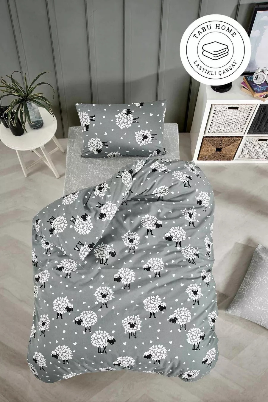 Kuzulu Tek Çarşafı Lastikli Kişilik Nevresim Takımı