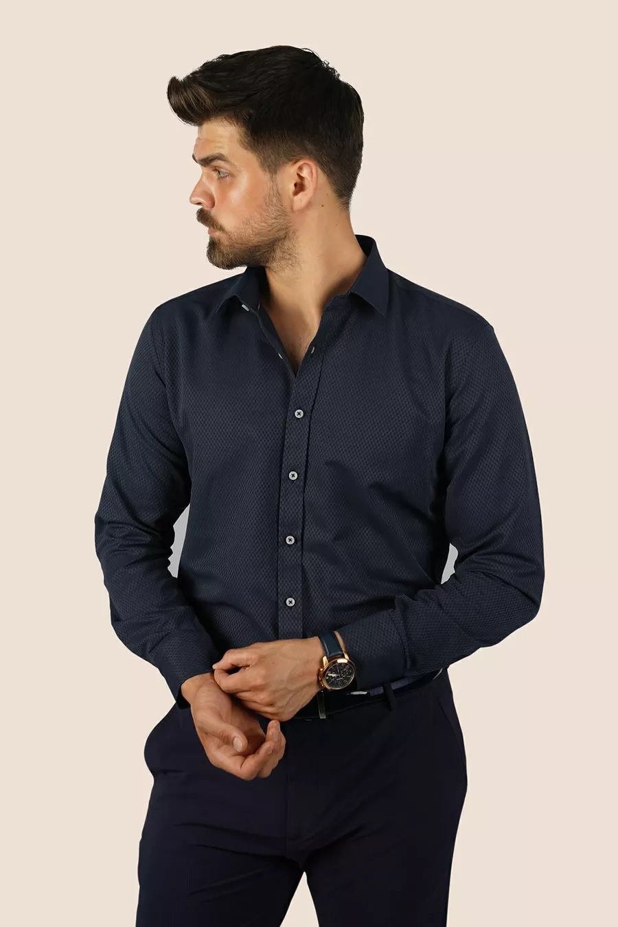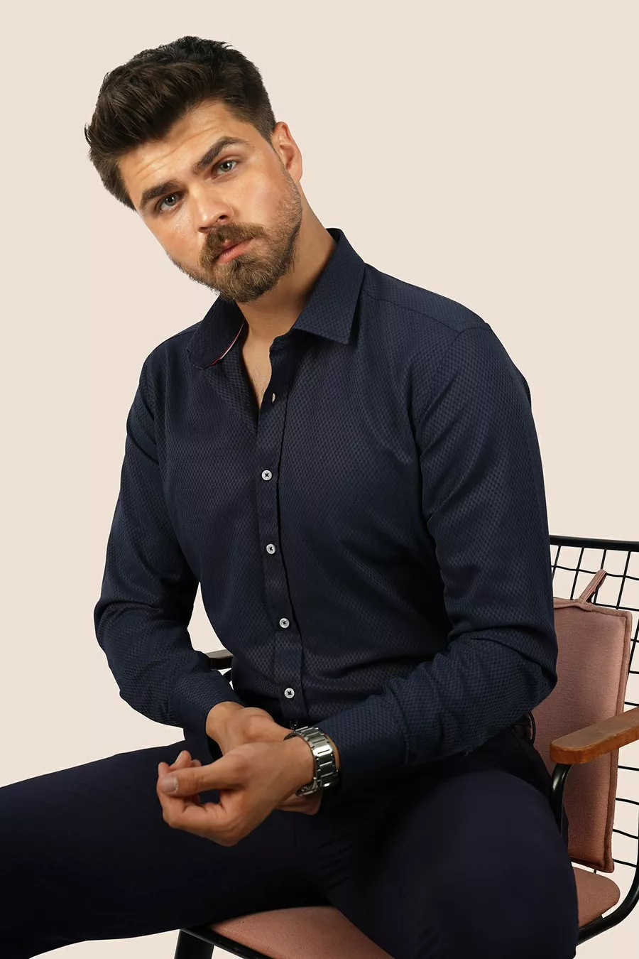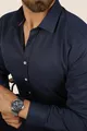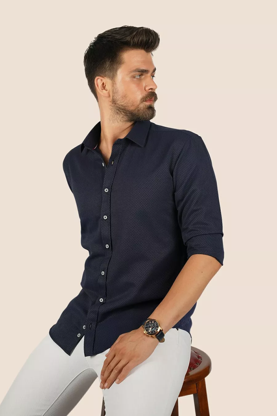 Lacivert Baklava Desen Slimfit Erkek Gömlek
