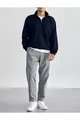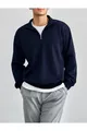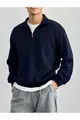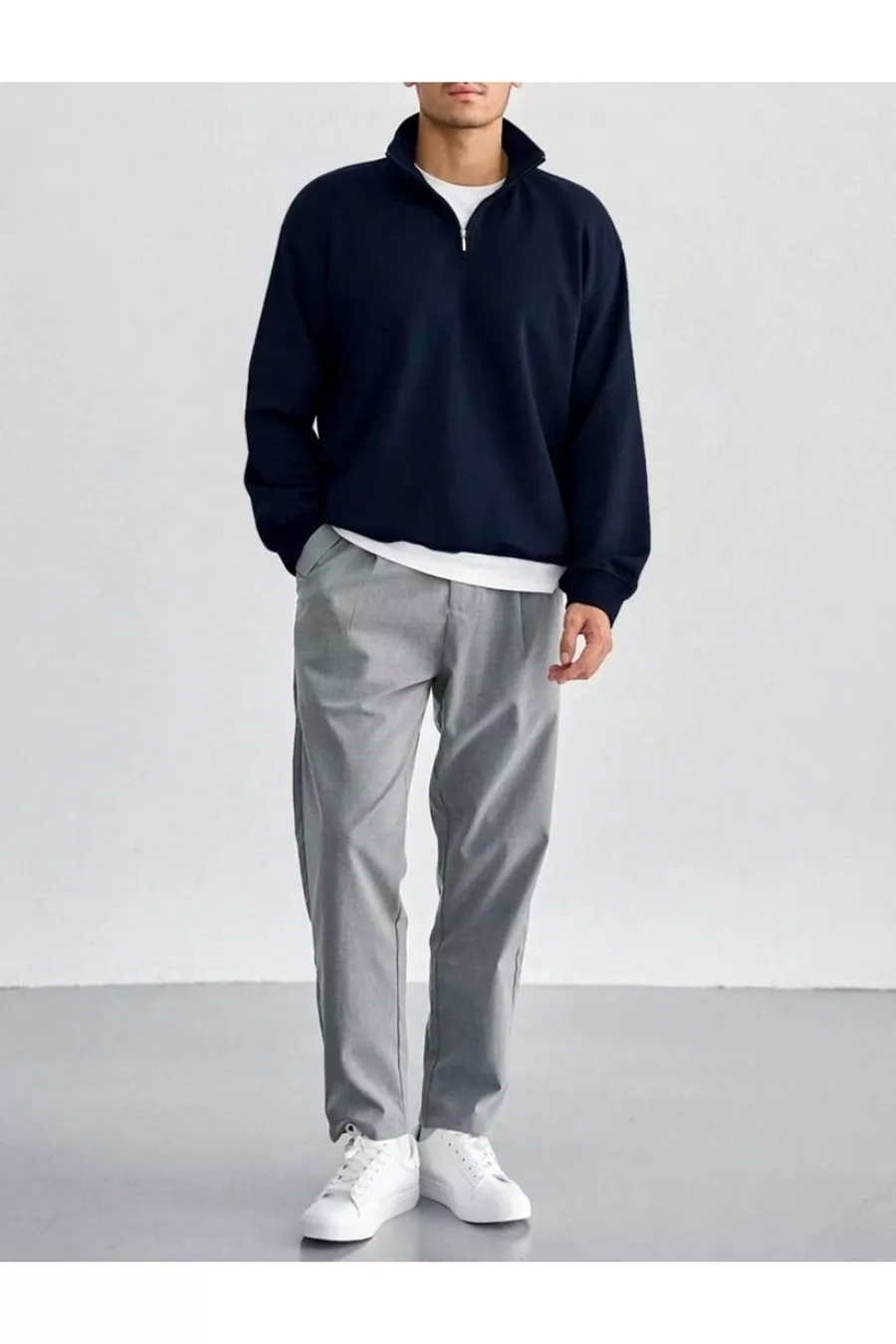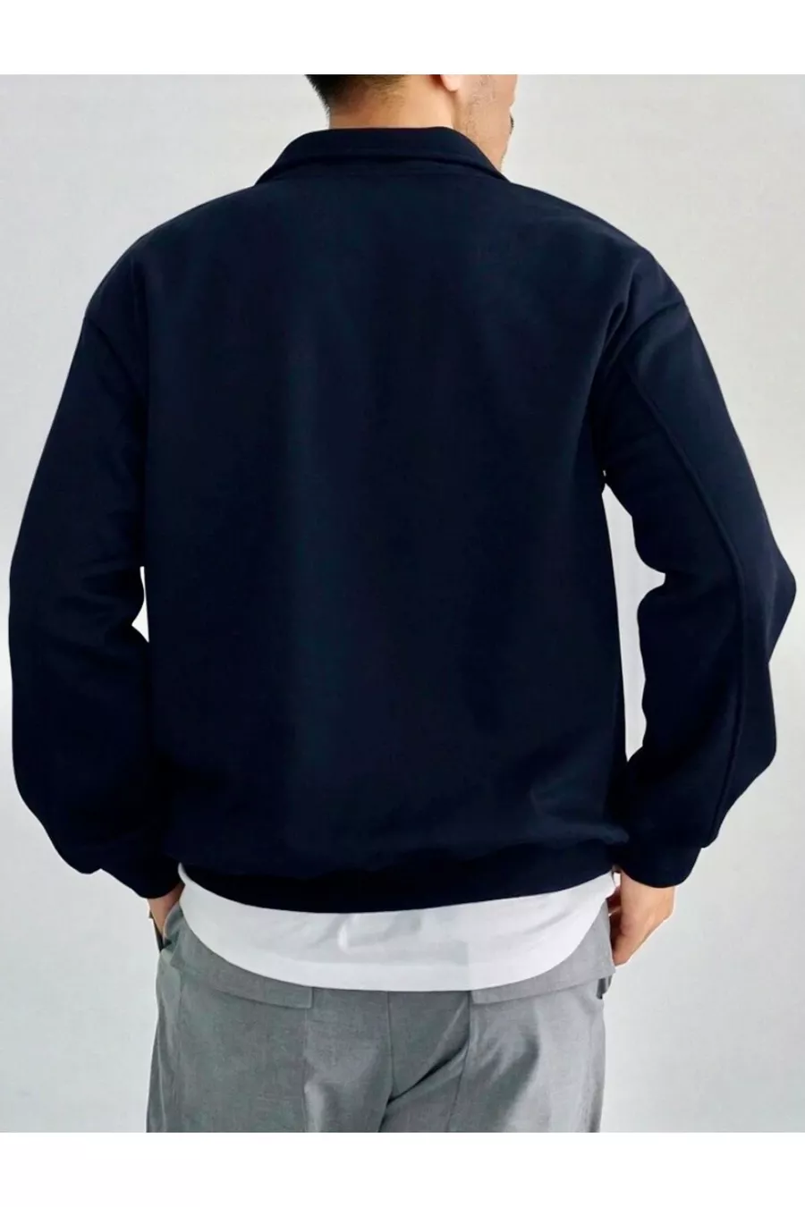 Lacivert Dik Yaka Düz Fermuarlı Sweatshirt