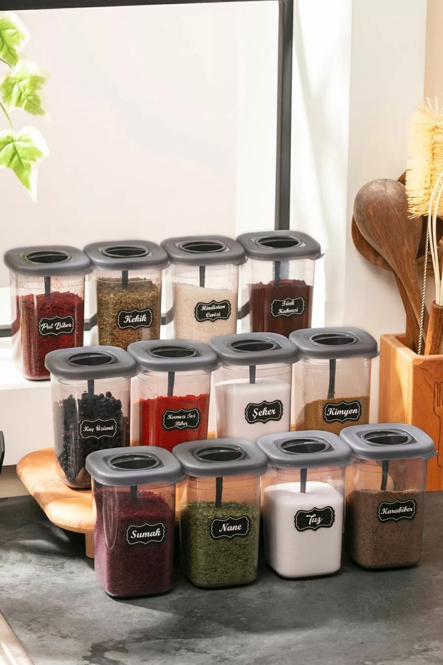 'li ml Etiketli Ve Kilitlenebilir Kendinden Kaşıklı Baharatlık Seti - Adet Etiket Hediye