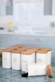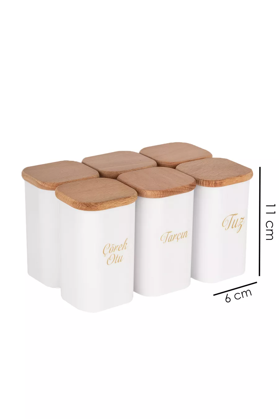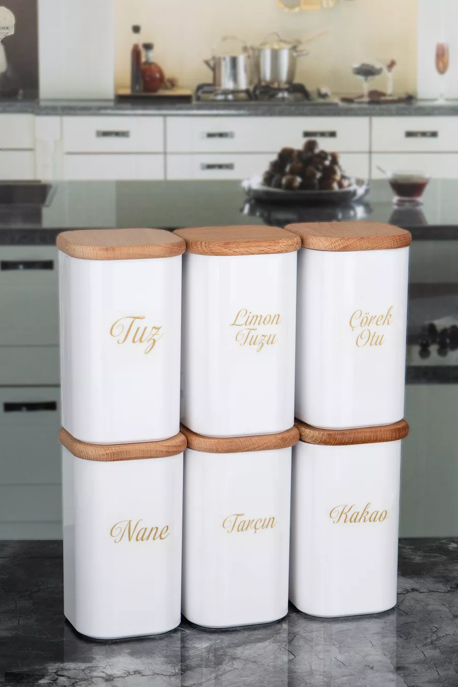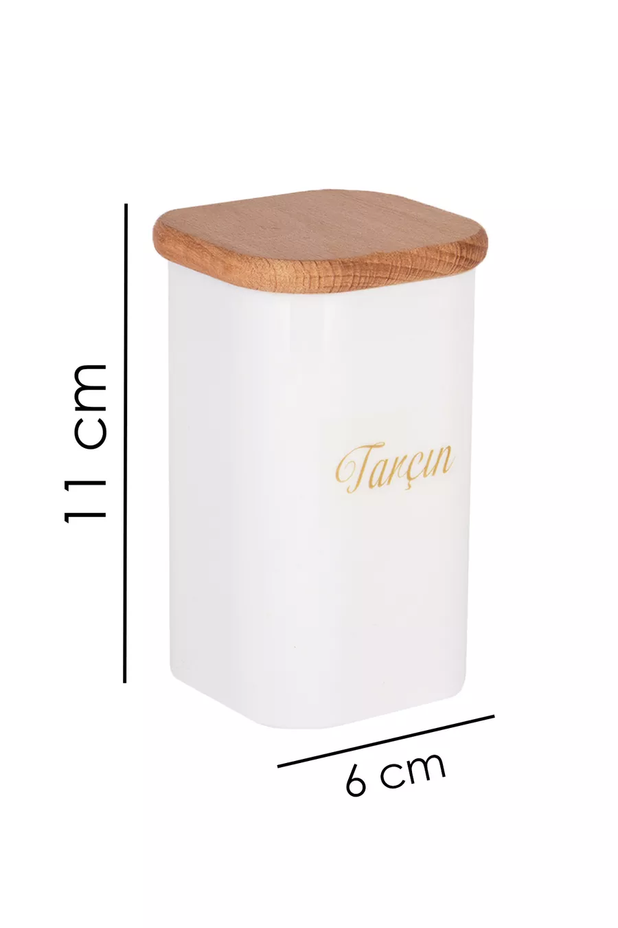 'li ml Vakumlu Bambu Ahşap Kapaklı Porselen Görünümlü Akrilik Baharatlık Etiket Hediyeli