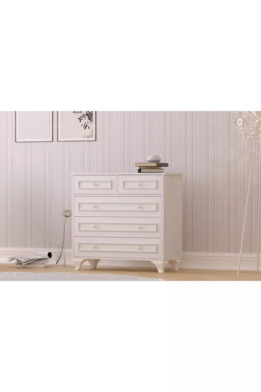 Renk:BeyazGaranti Süresi:2 YılMateryal:SuntalamYükseklik:86 cmGenişlik:90 cmDerinlik:40 cmÇekmece Sayısı:5Ürün Özelliği:ÇekmeceliStil:KlasikTema / Stil:KlasikÖzellik:Çekmeceli